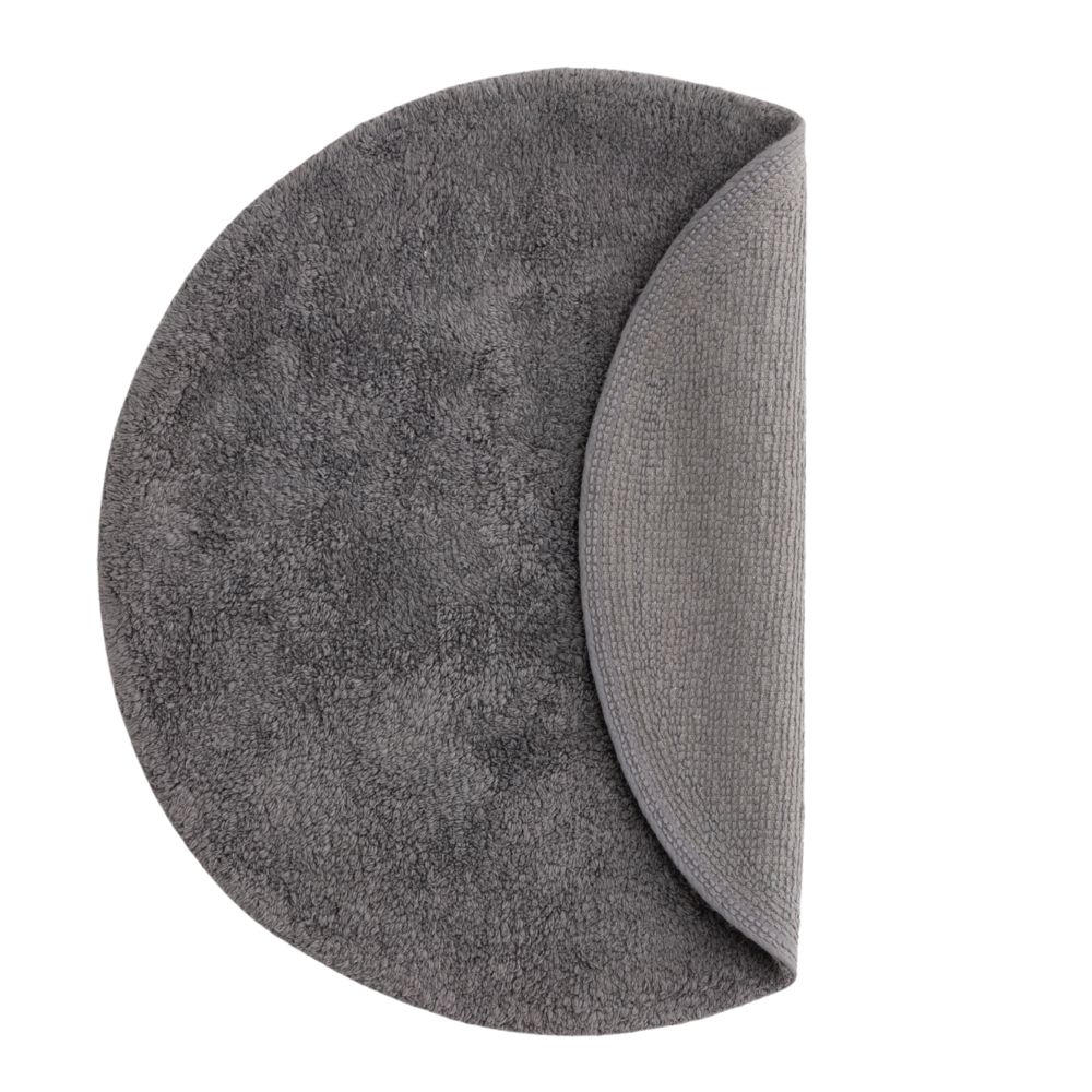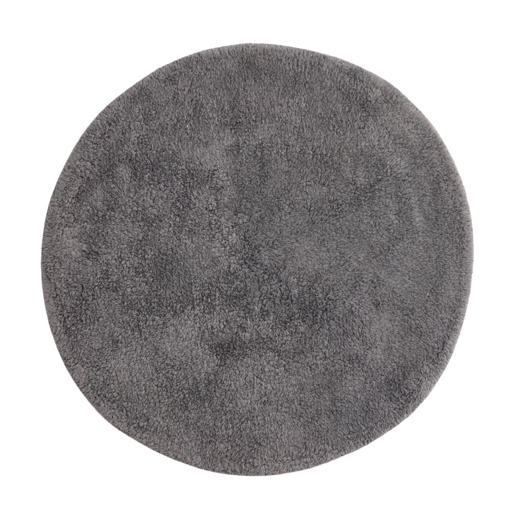 En mjuk och absorberande rund badrumsmatta i mörkgrå bomull med 10 mm tjocklek. Ger komfort och stil till ditt badrum och är lätt att rengöra.