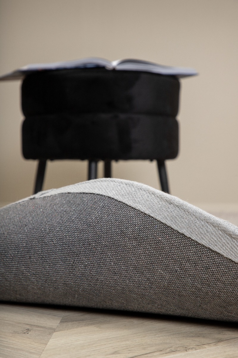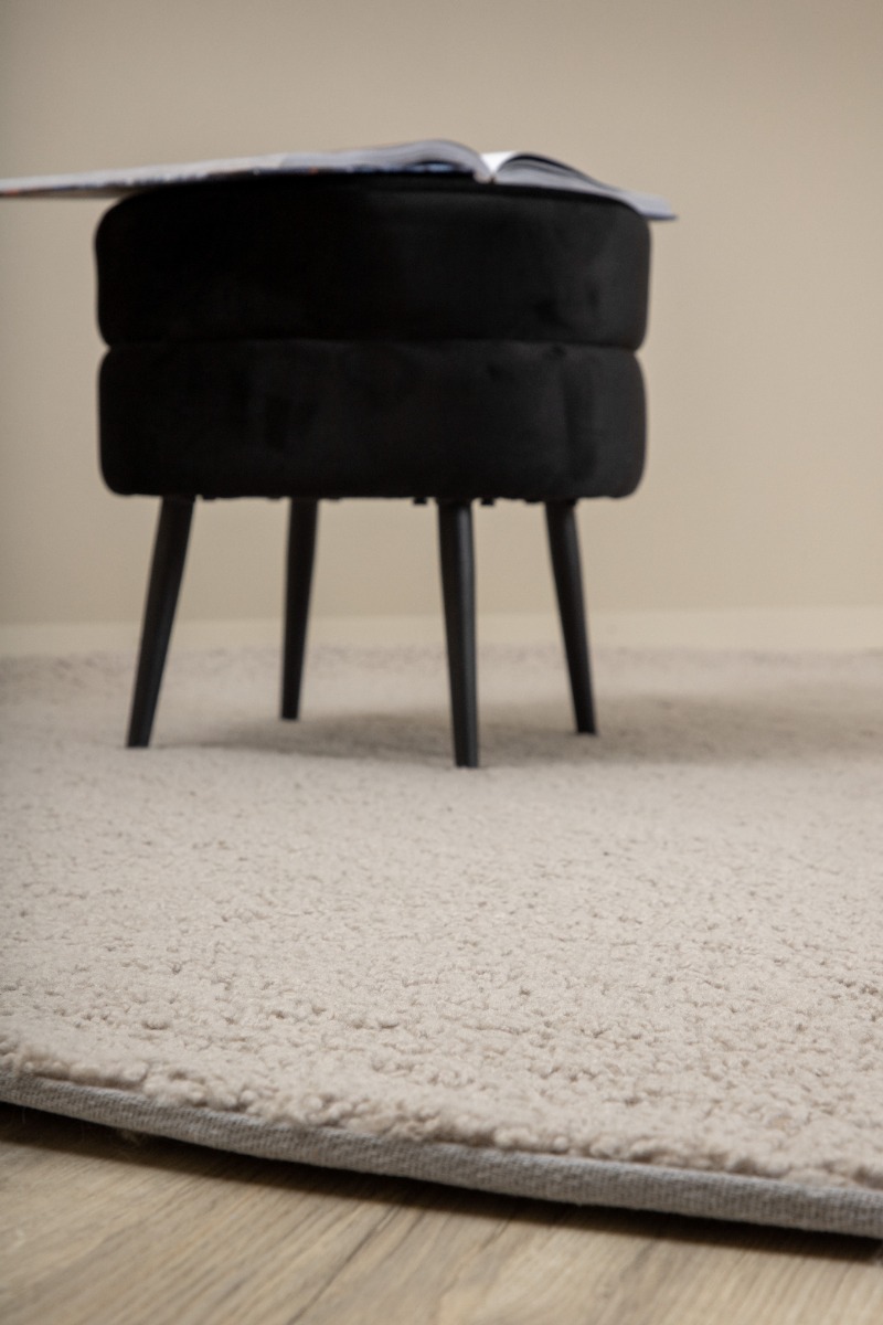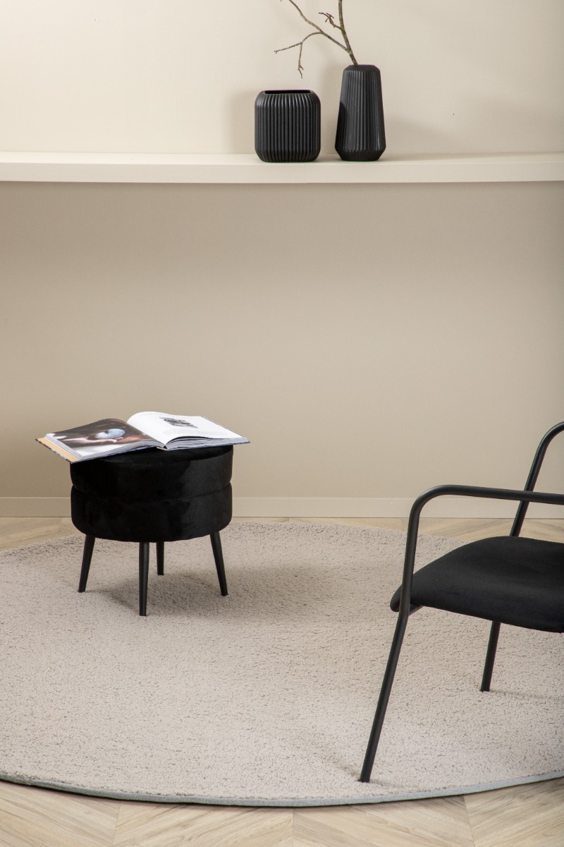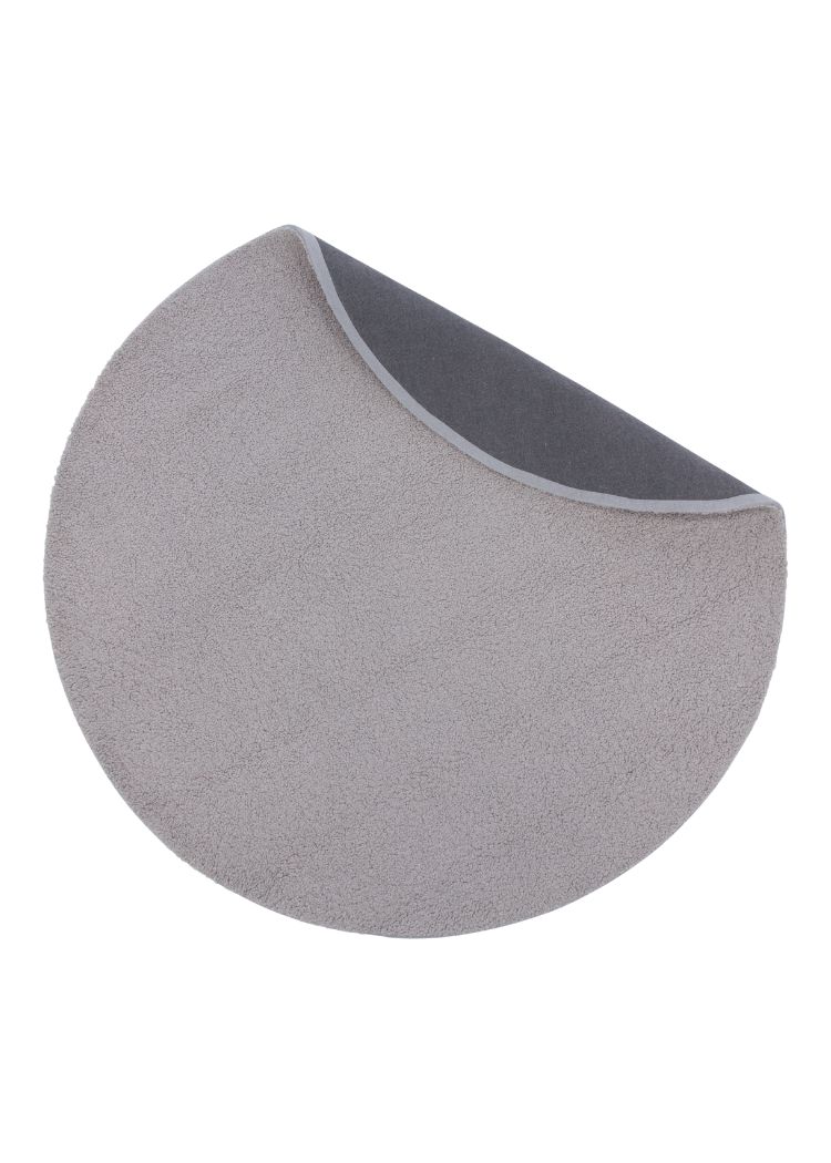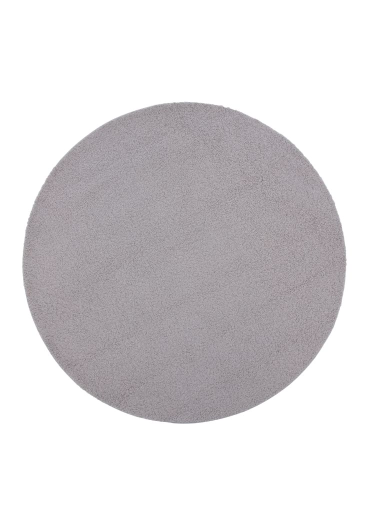 Miren grå rund ryamatta i mjuk polyester. Perfekt för komfort och stil i ditt hem med en tålig och lättskött design.