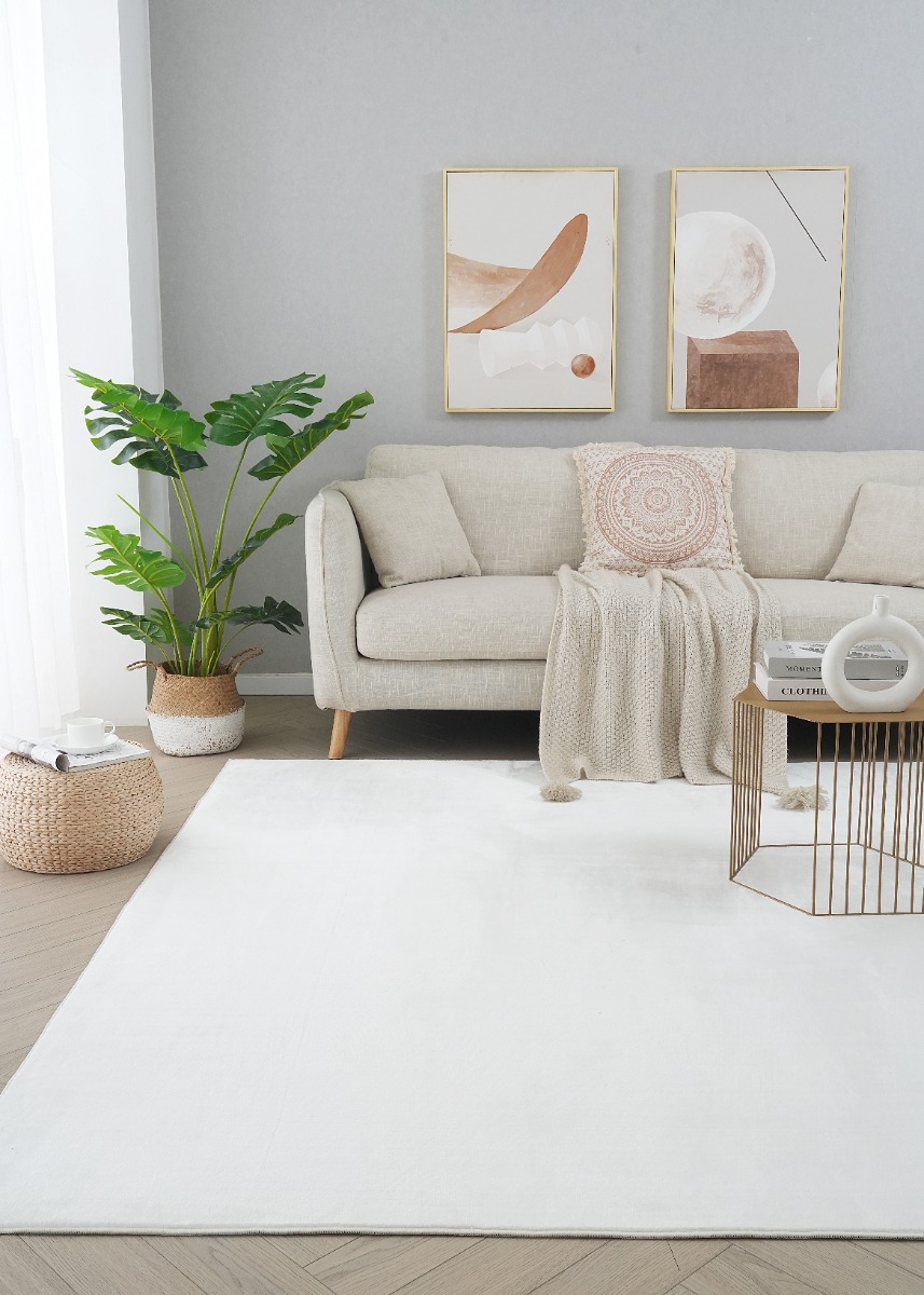 Upplev mjuk lyx med vår pälsmatta i offwhite som skimrar vackert. En säker, mjuk och stilren matta som ger exklusiv värme till ditt hem.