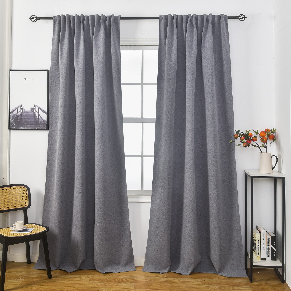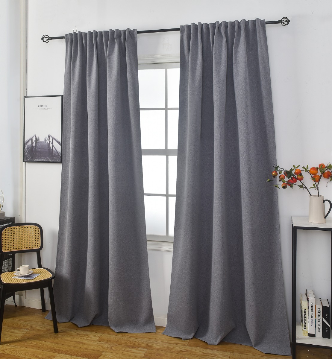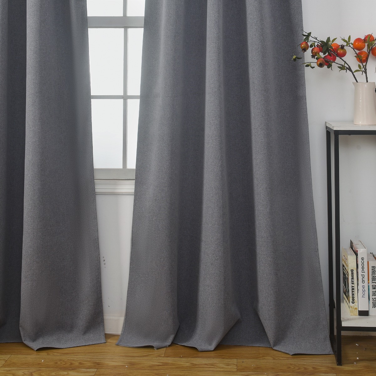 Effektiva mörkläggande gardiner i 2-pack som blockerar ljus och skapar en stilren grå atmosfär. Enkel skötsel och Oeko-Tex-certifierade för trygg användning.