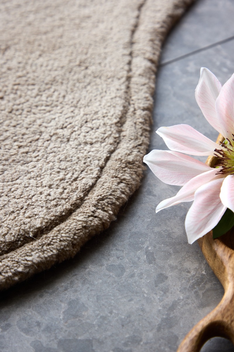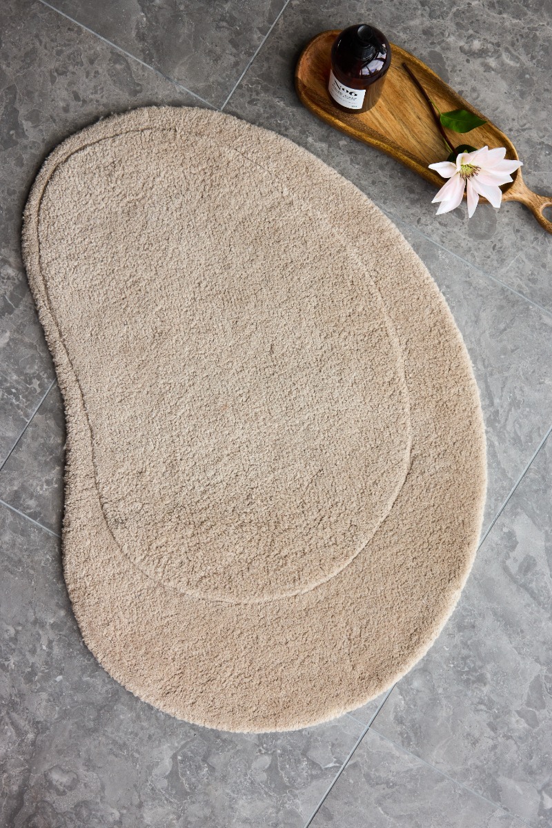 Nala beige badrumsmatta i 100% bomull kombinerar mjuk komfort med stilren design. En handgjord matta som ger ditt badrum en varm och inbjudande känsla.