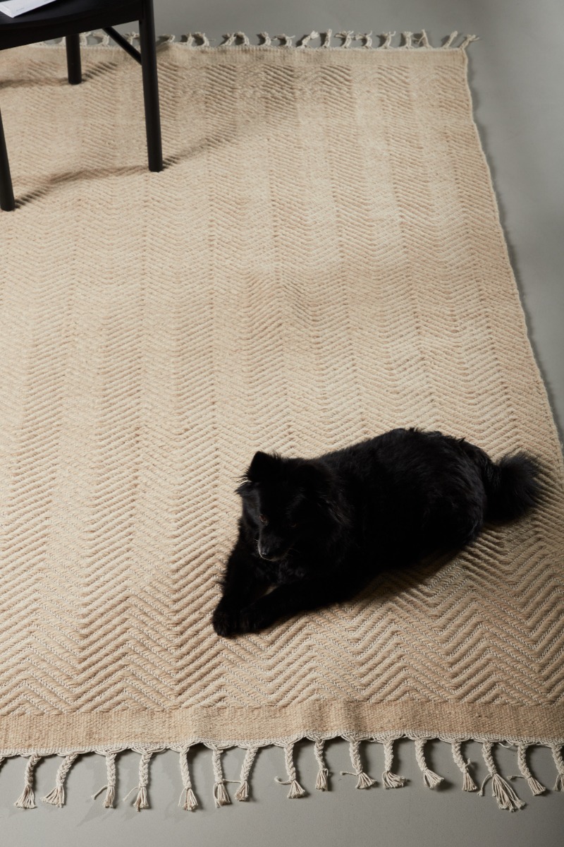 Denna ullmatta erbjuder en naturlig och tidlös elegans samtidigt som den bidrar med värme och komfort i ditt hem. Tack vare ullens naturliga egenskaper är mattan både slitstark och lätt att hålla ren, vilket gör den idealisk för hemmets mest använda ytor. Dess neutrala beige ton harmoniserar väl med både moderna och klassiska rum och skapar en inbjudande atmosfär. Placera den under soffgruppen eller vid sängen för en varm och mjuk känsla varje dag. För att bevara mattans kvalitet rekommenderas regelbunden dammsugning och vid behov fläckborttagning med ullvänliga rengöringsmedel.
