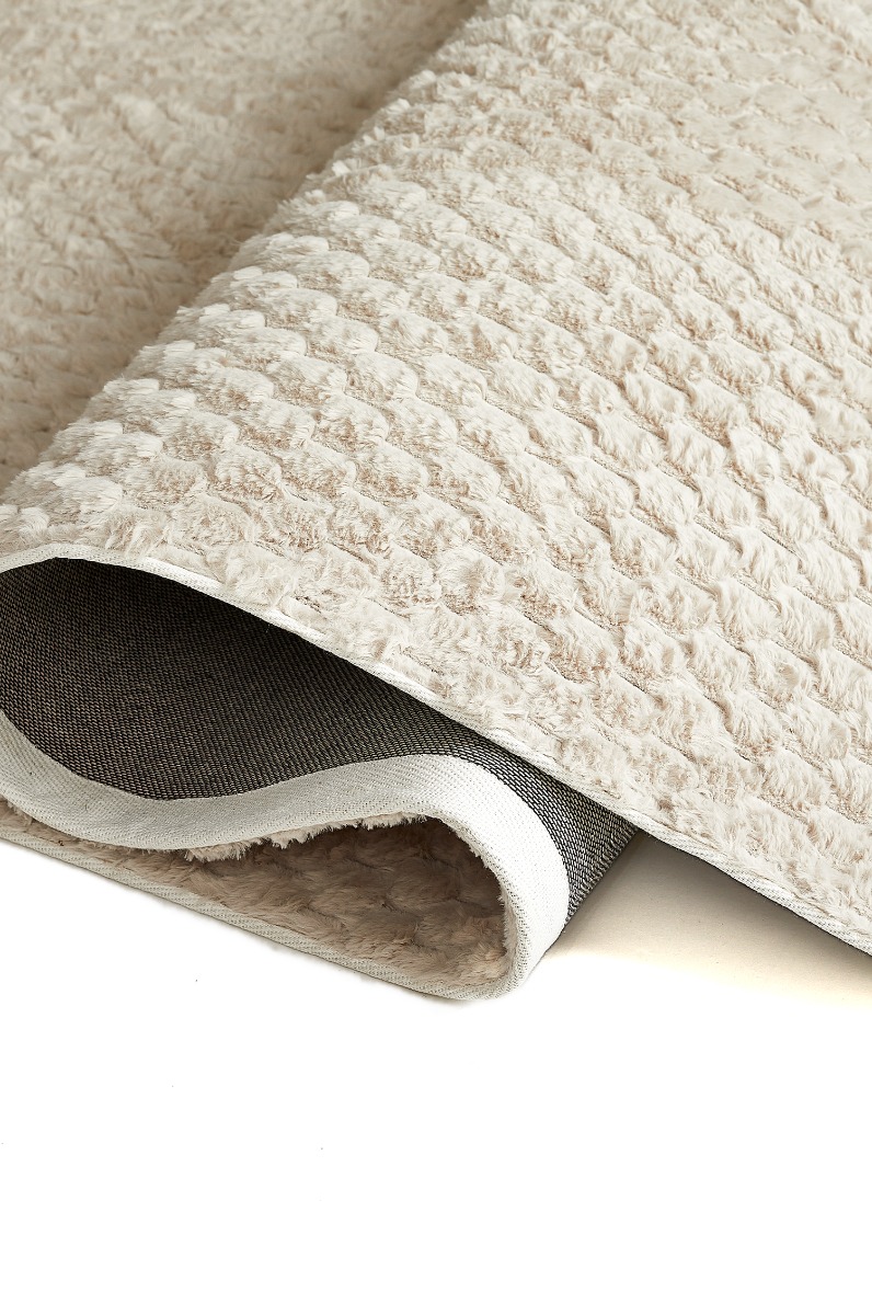 Mjukt och stilrent beige ryamatta i 100% polyester med 12 mm tjocklek. Skapar en varm och ombonad känsla samtidigt som den är lätt att rengöra och passar i alla hem.
