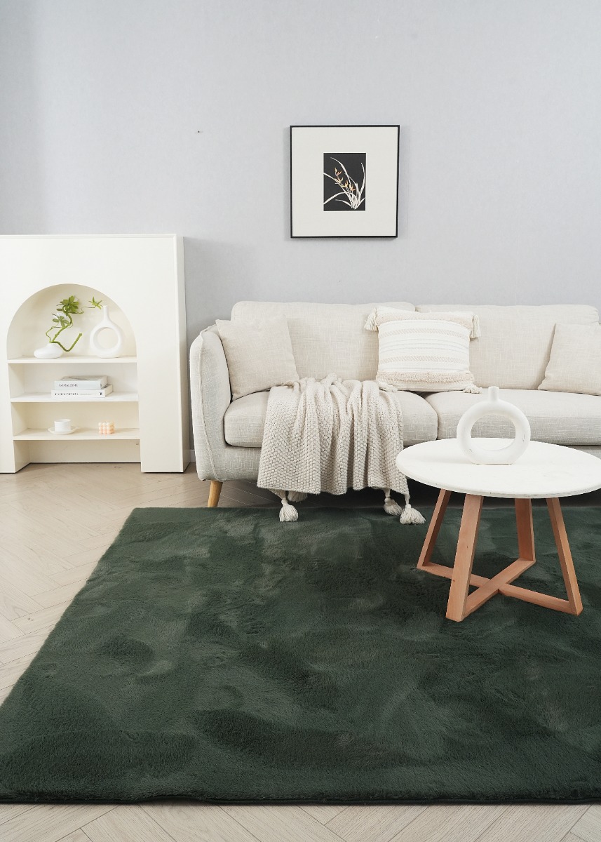Mjuk och allergivänlig pälsmatta i mörkgrönt med tjock, fluffig yta för extra värme och komfort. Perfekt för mysiga hem och lätt att underhålla.
