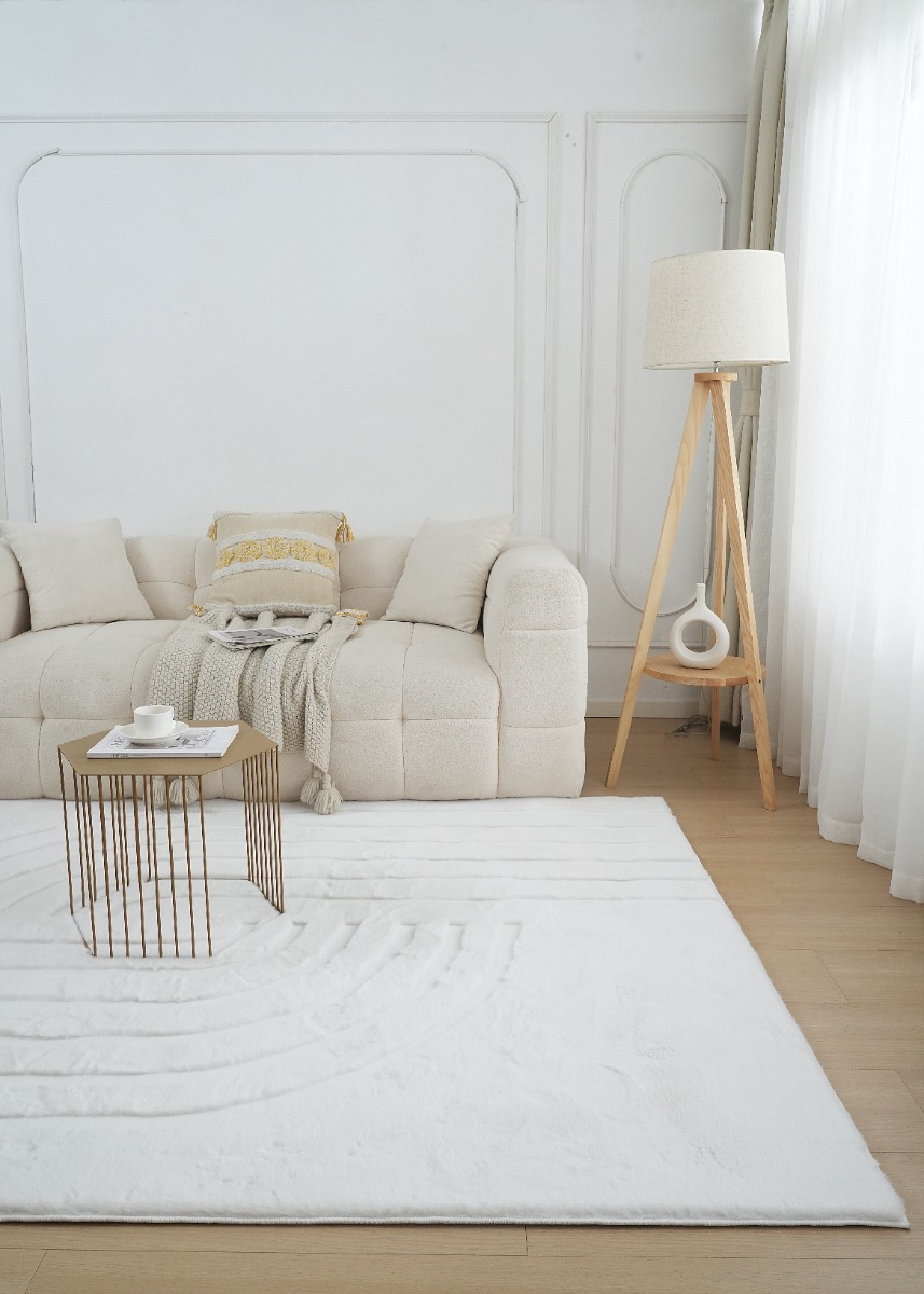 Mjuk och lyxig pälsmatta i offwhite med tjock plysch. OEKO-TEX-certifierad och lätt att rengöra, perfekt för ett mysigt och stilrent hem.