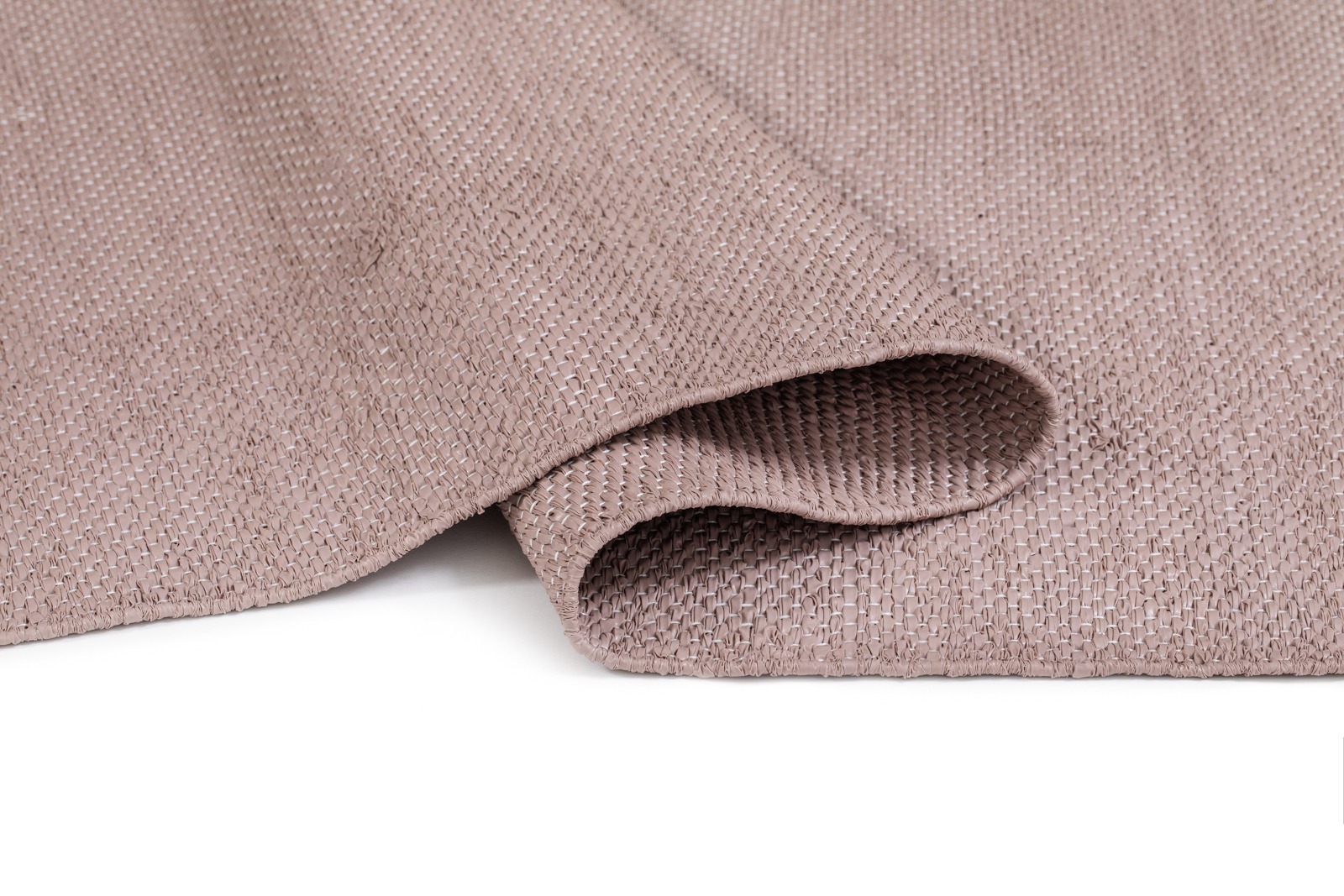 Handvävd rosa plastmatta i tåligt PVC med dubbelsidigt mönster. Mjuk och lätt att rengöra – för ett lekfullt och färgstarkt hem.
