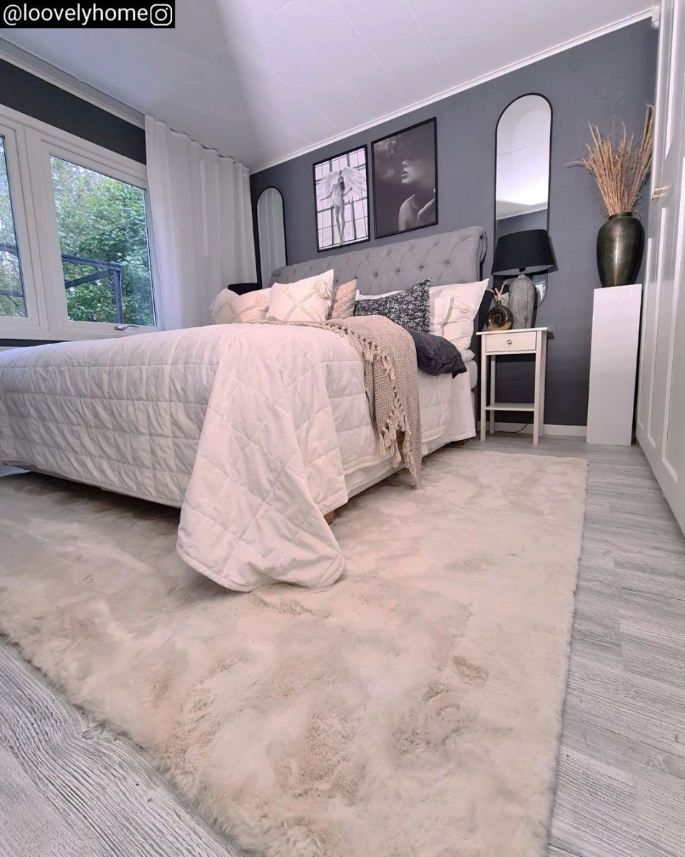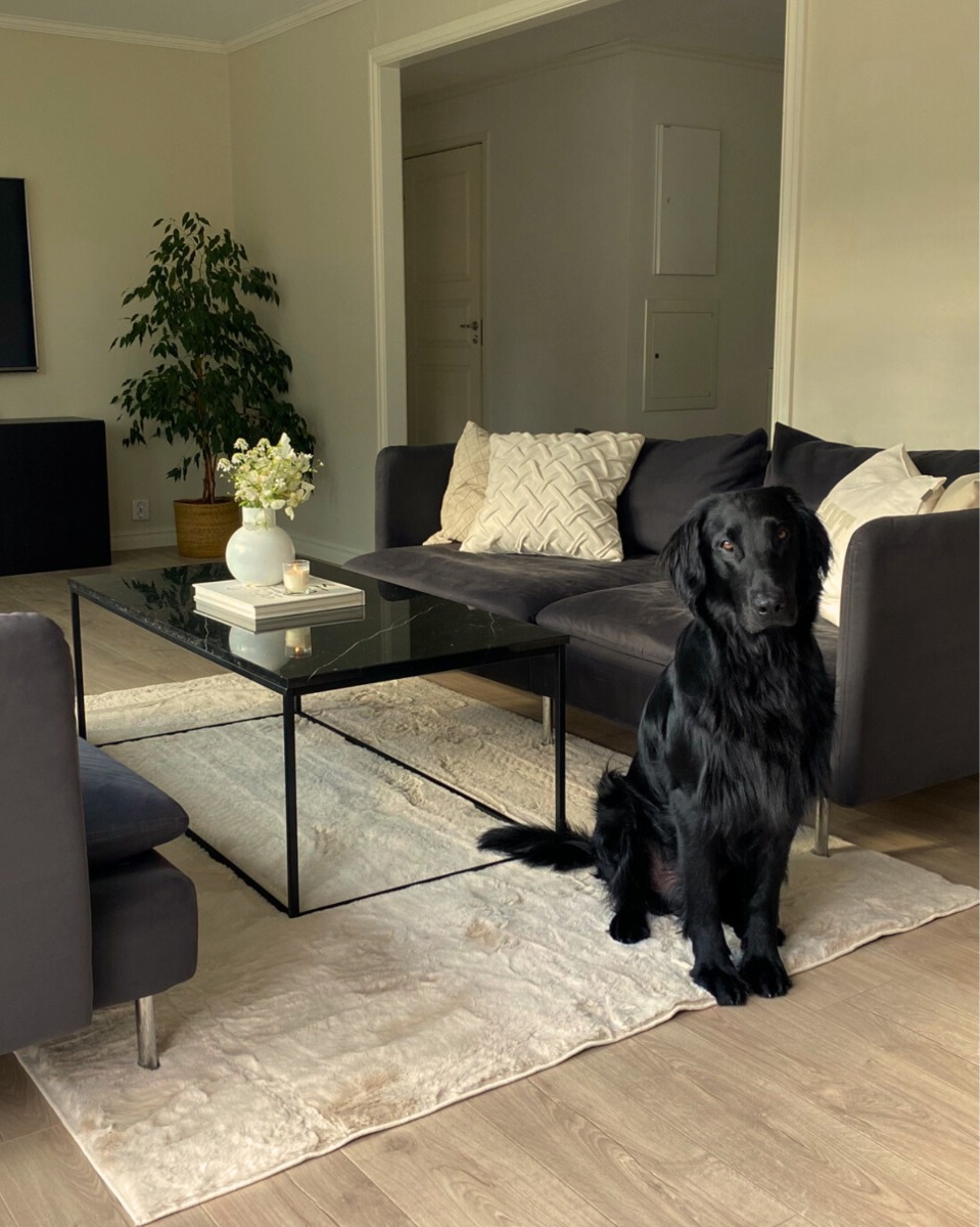 Fluffig och tvättbar ljusbeige pälsmatta med halkfri baksida. Perfekt kombination av mjukhet, stil och enkel skötsel för alla rum.