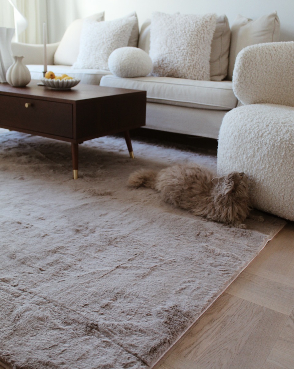 Upplev maximal komfort med vår mjuka och tvättbara pälsmatta i varma taupe. Perfekt som mysig inredningsdetalj och lekplats för hela familjen.