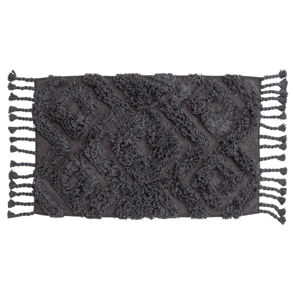 Mjuk och absorberande mörkgrå bomullsmatta för badrum med 12 mm tjocklek. Stilren design och lättskött material för ditt våtutrymme.