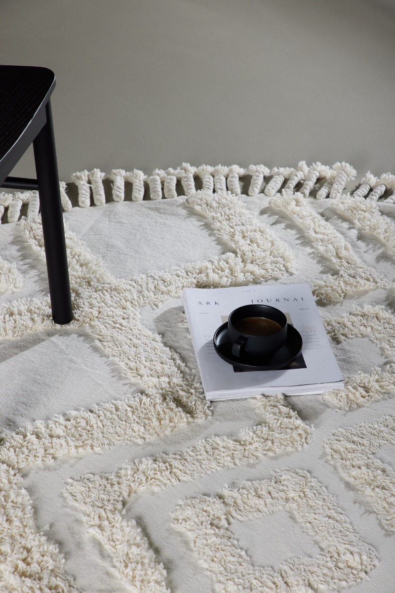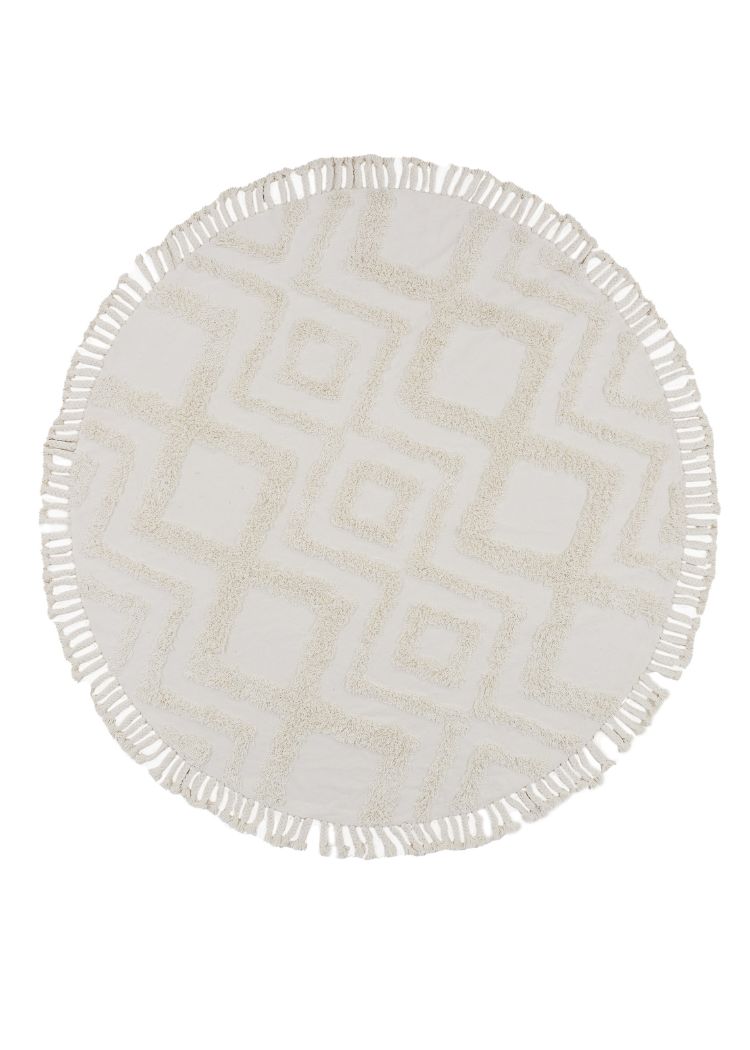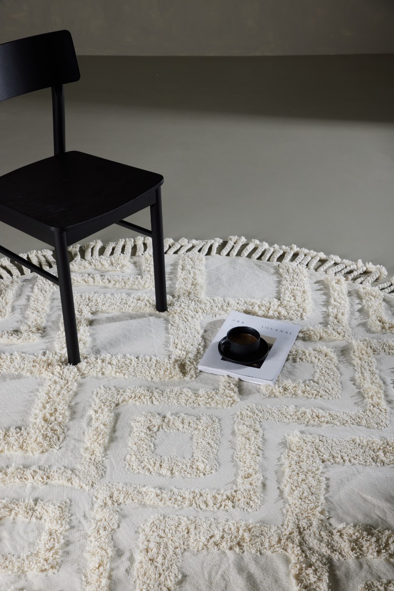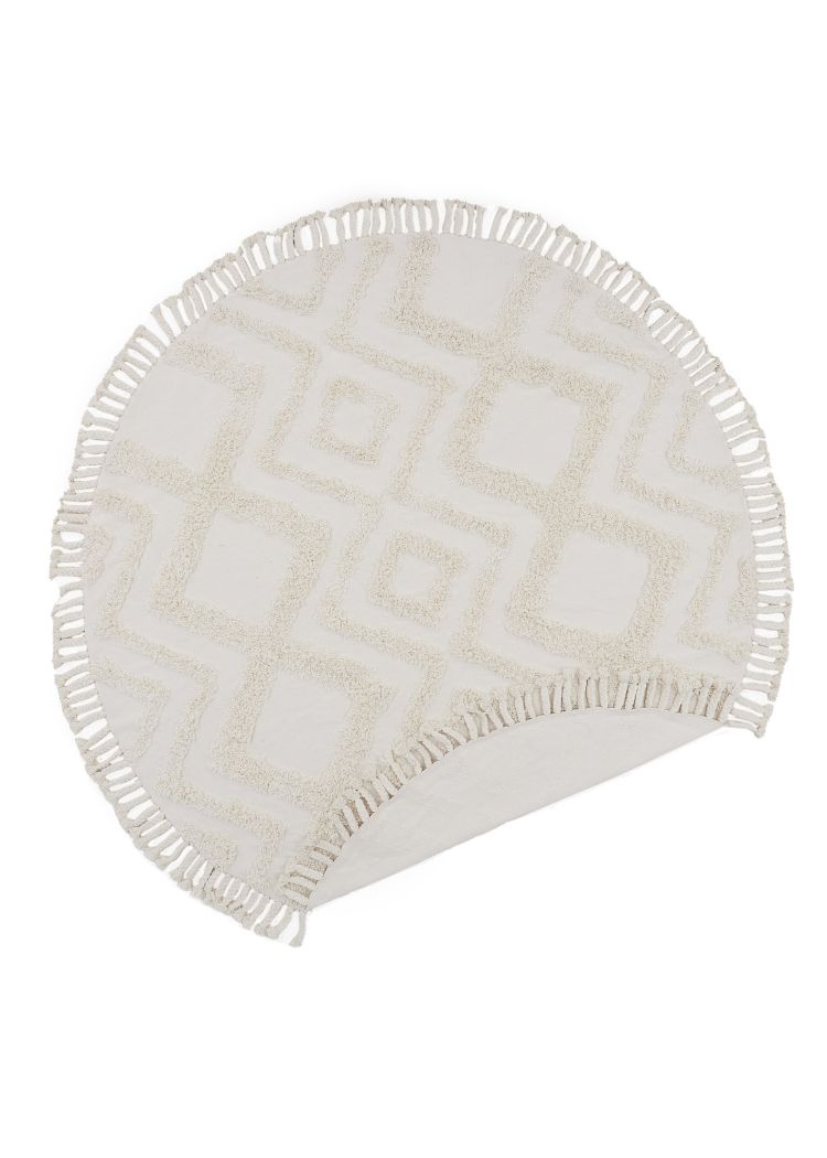 Mjukt rund bomullsmatta i vitt som ger naturlig elegans och skön komfort. Perfekt för vardagsrum, sovrum eller barnrum.