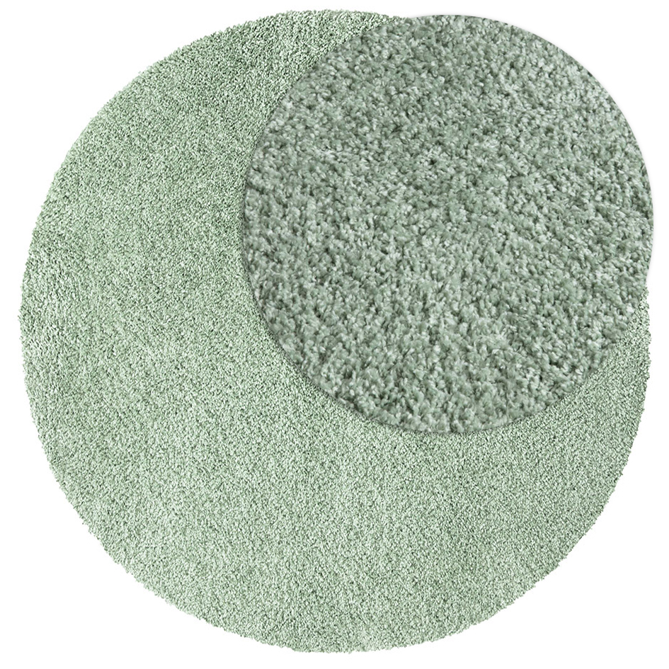 Rund ryamatta i grön polypropen med cirka 30 mm tjocklek. Slitstark, mjuk och lättskött matta som ger färg och komfort till ditt hem.