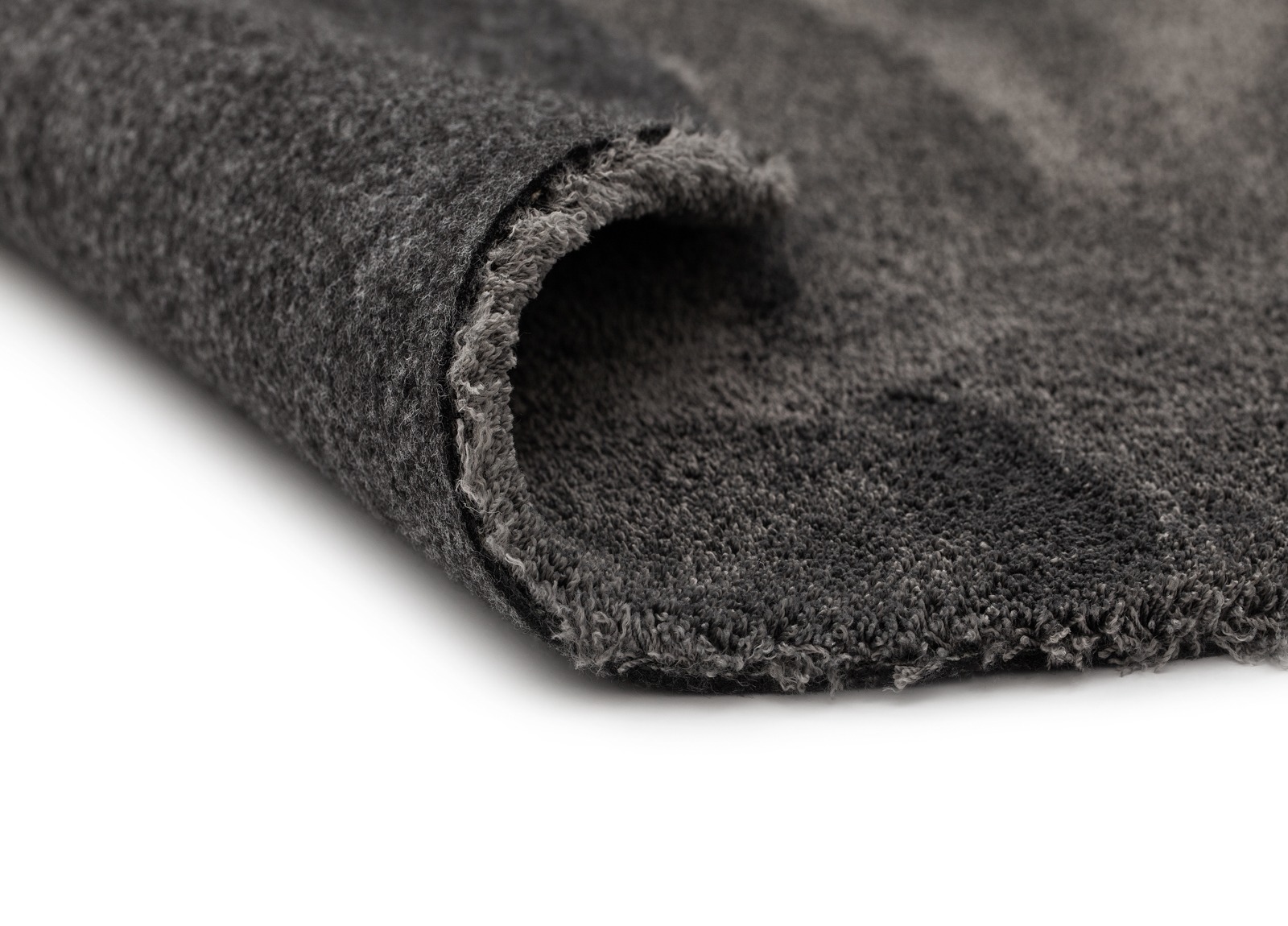 Mjuk rund ryamatta i stilren grafitgre5 microfiber, maskintve4ttbar och formbar. Perfekt kombination av komfort och praktisk anve4ndning.