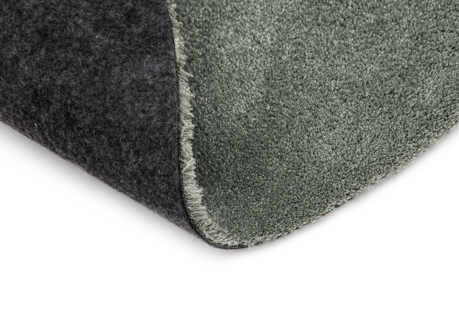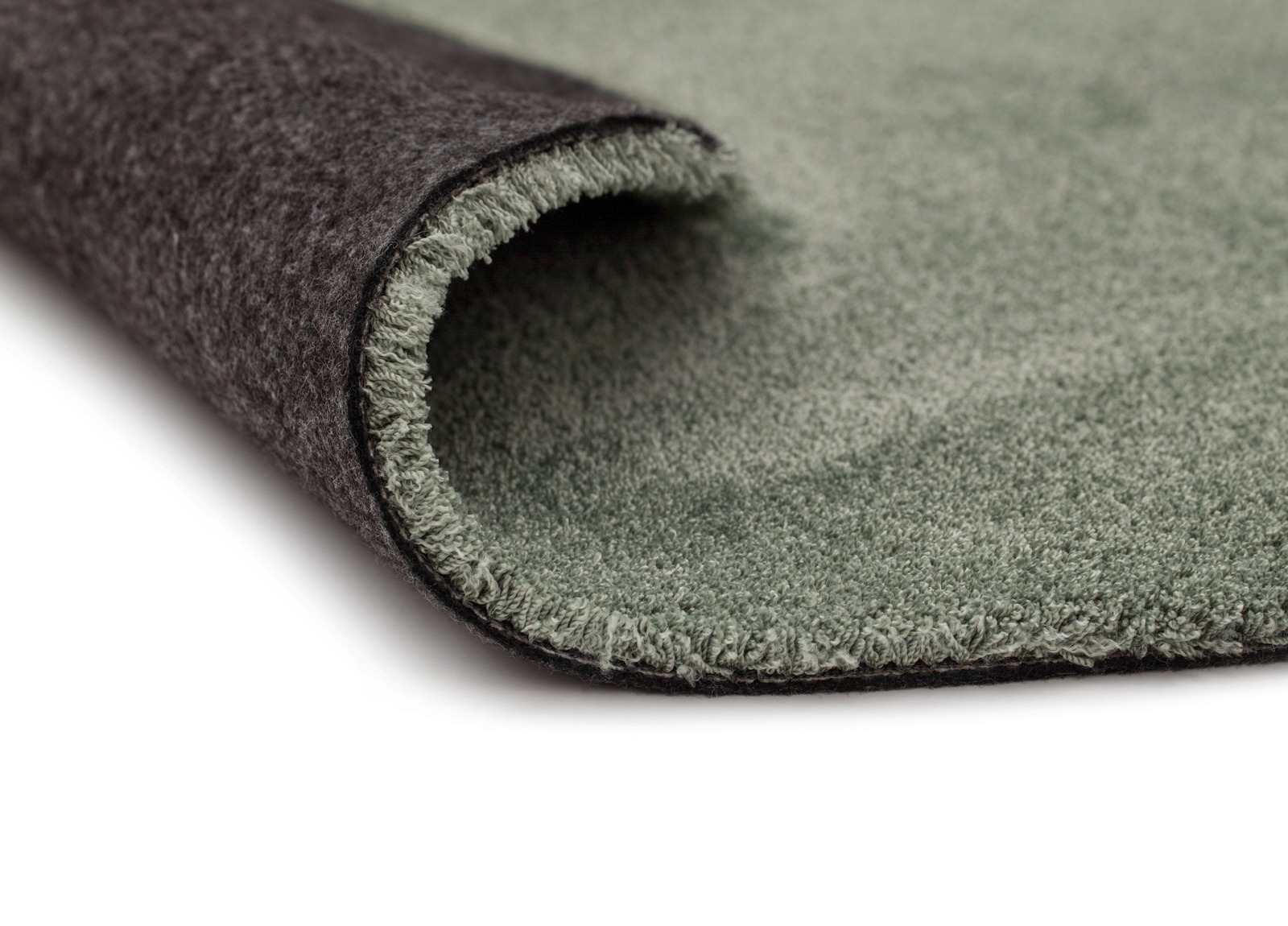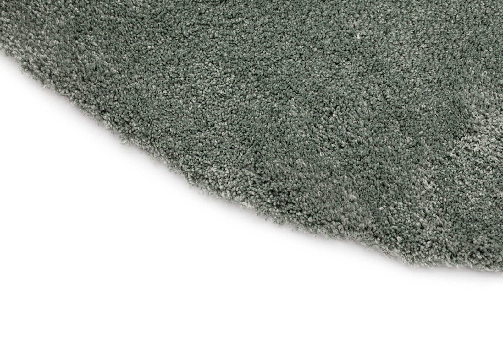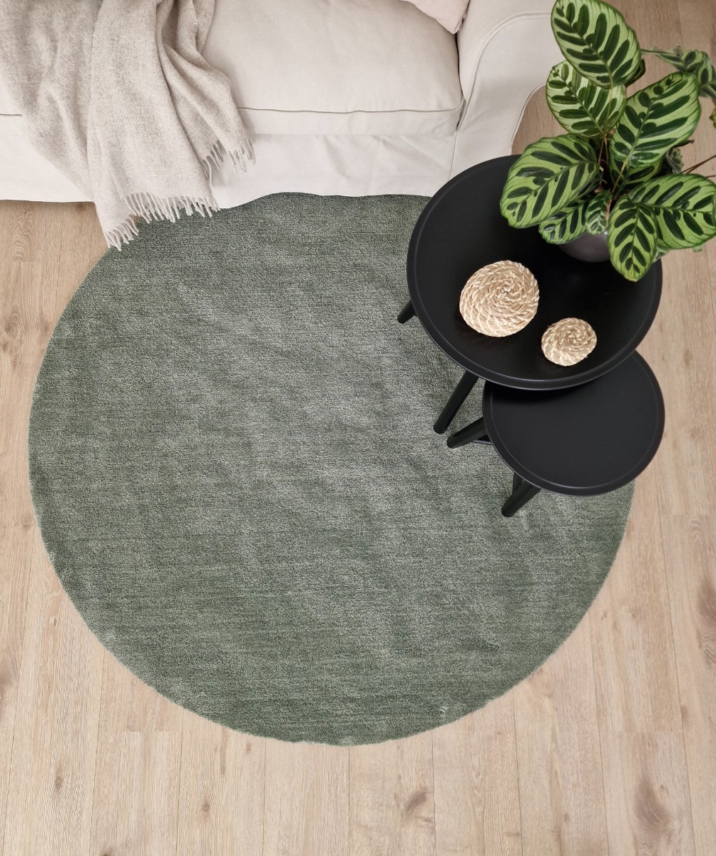 Rund grön microfiber matta med mjuk känsla och enkel skötsel. Maskintvättbar och golvskyddande filtbotten gör den perfekt för alla rum.