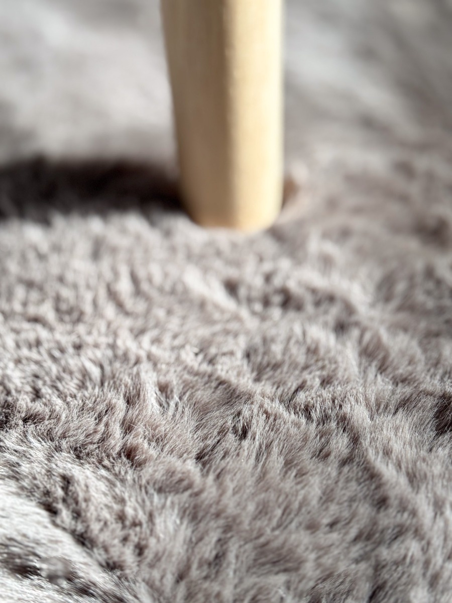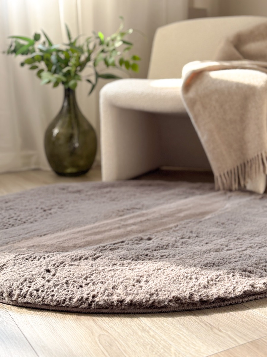 Upptäck en rund, mjuk pälsmatta i djup antracitgrå som kombinerar lyxig komfort och modern design. Perfekt för varje rum som behöver en elegant touch.