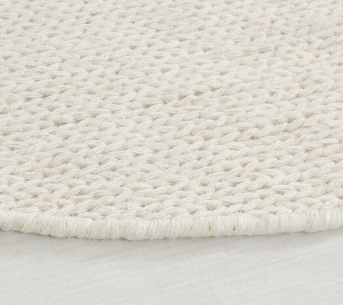 Rund ullmatta i offwhite med bomull inslag för mjukhet och hållbarhet. Perfekt för alla rum som behöver en naturlig och elegant matta.