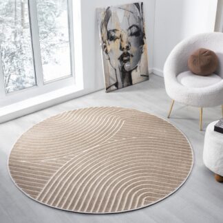 Placeringstips: centrera mattan i rummet eller under den möbel den tillhör. Runda mattor ser bäst ut när de har luft runtom – inte pressa in dem mot väggar.