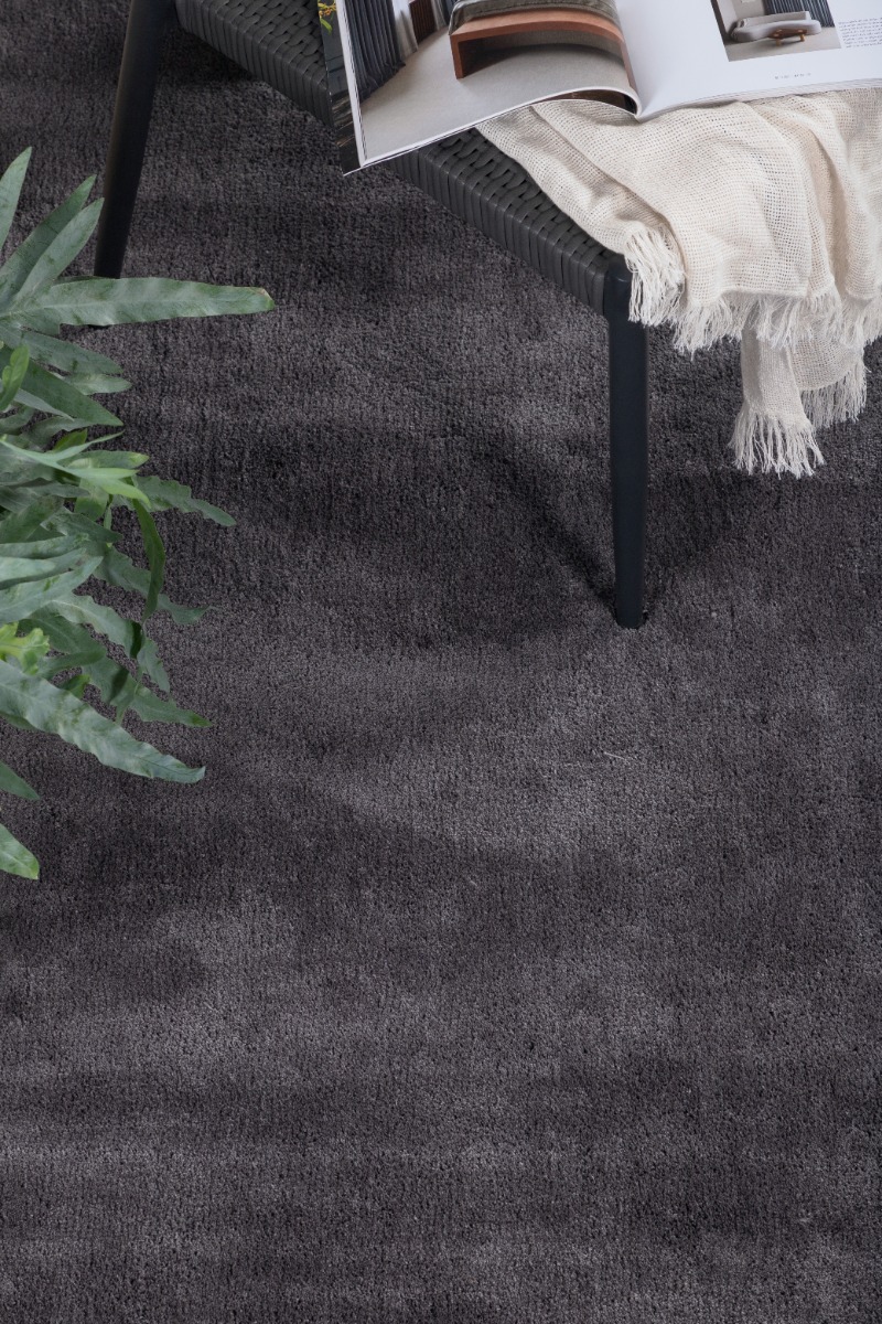 Upptäck en mjuk och slitstark mörkgrå ryamatta i polyester som lyfter inredningen och ger skön komfort under fötterna. En stilfull och praktisk inredningsdetalj.