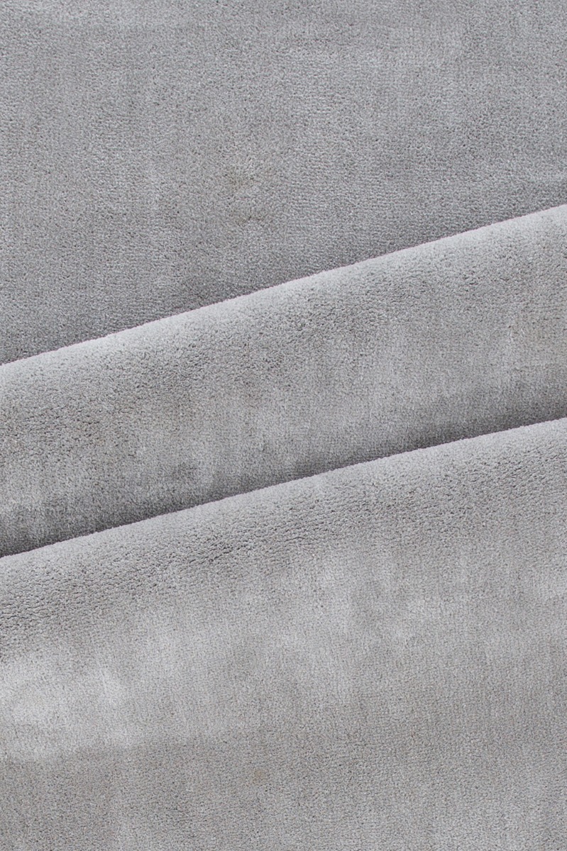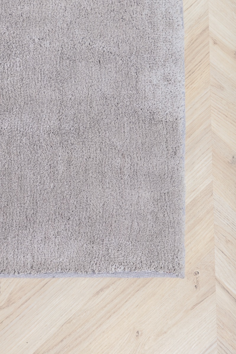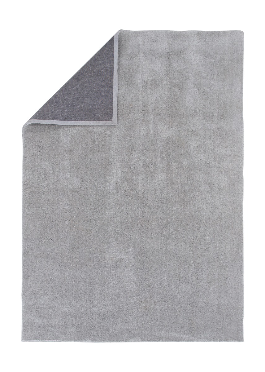 Mjuk och tålig silvergrå ryamatta i 100% polyester med 15 mm tjocklek. Ger värme och stil till ditt hem med enkel skötsel.