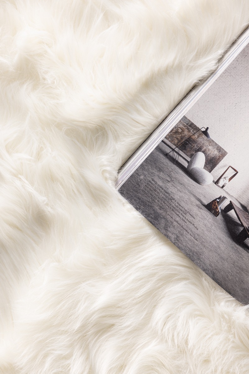 Vit ryamatta i mjuk akryl med tjock och skön textur. Perfekt för att ge värme och elegans till varje rum hemma.