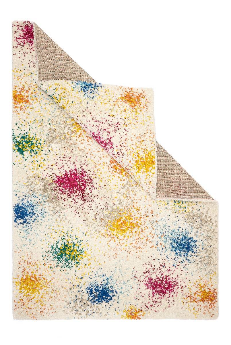 Mjuk och färgglad ryamatta med konfettimönster i flera glada färger. Allergivänlig och bekväm, perfekt för att ge hemmet liv och värme.