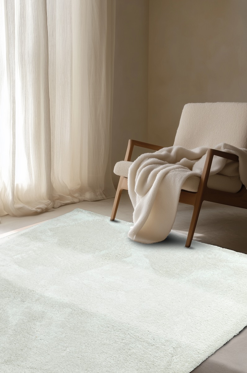 Mjuk och slitstark vit ryamatta med 20 mm lugg. Enkel att rengöra och passar perfekt i vardagsrum och sovrum för en varm och elegant atmosfär.