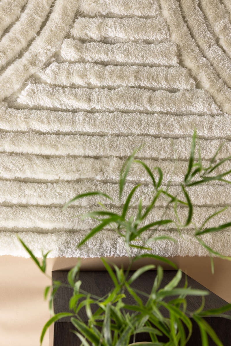 Mjuk och elegant vit ryamatta i tjock polyester. Skapar en varm och inbjudande atmosfär med långvarig komfort och stilren design.