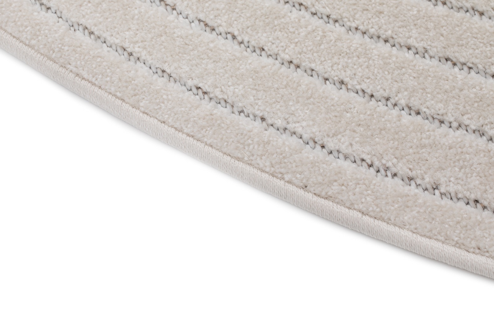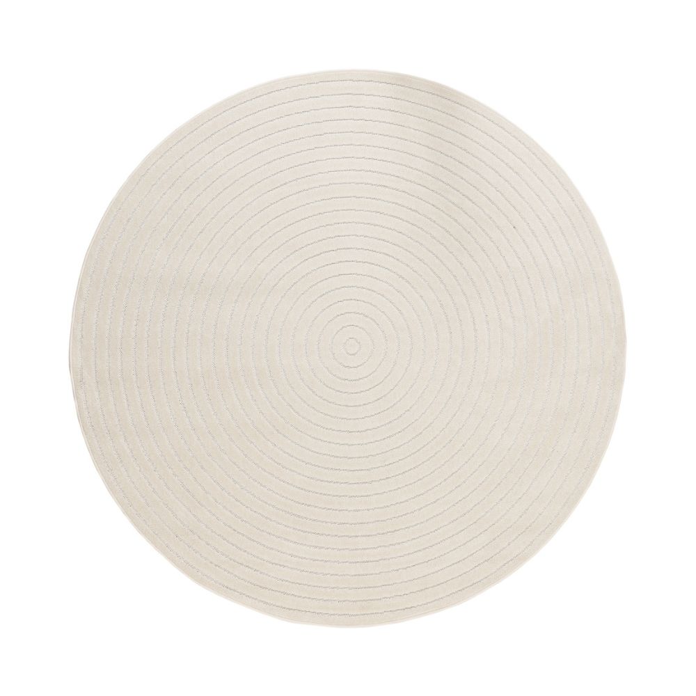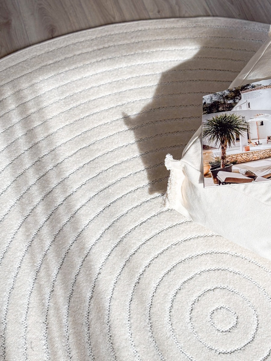 Cremefärgad rund matta i slitstark polypropylen, perfekt för både inom- och utomhusbruk. Mjuk och lättskött med elegant vävd design som ger stil och komfort.