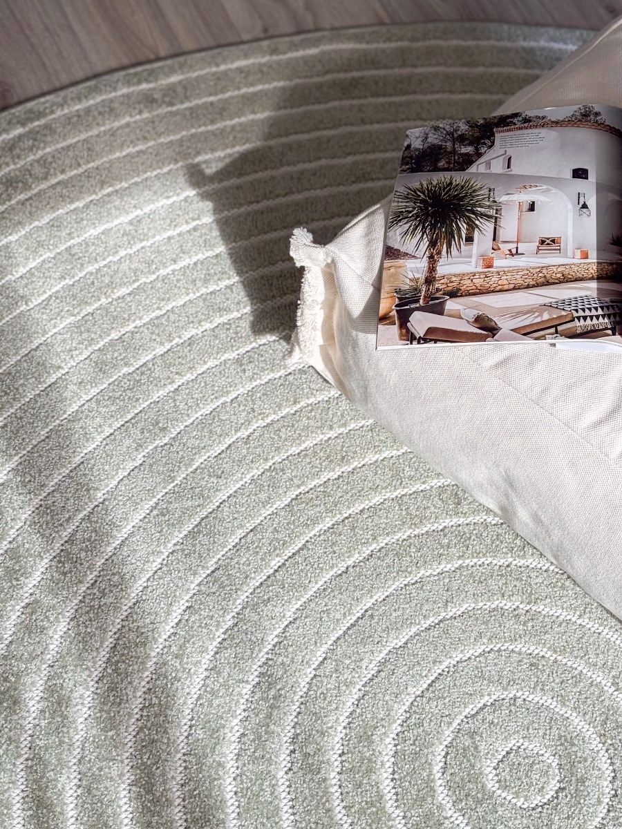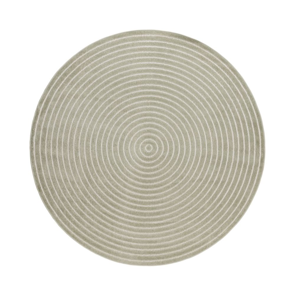 Grön rund matta i slitstark 100% polypropen. Perfekt för både inom- och utomhusbruk med lättskött yta och elegant vävstruktur.