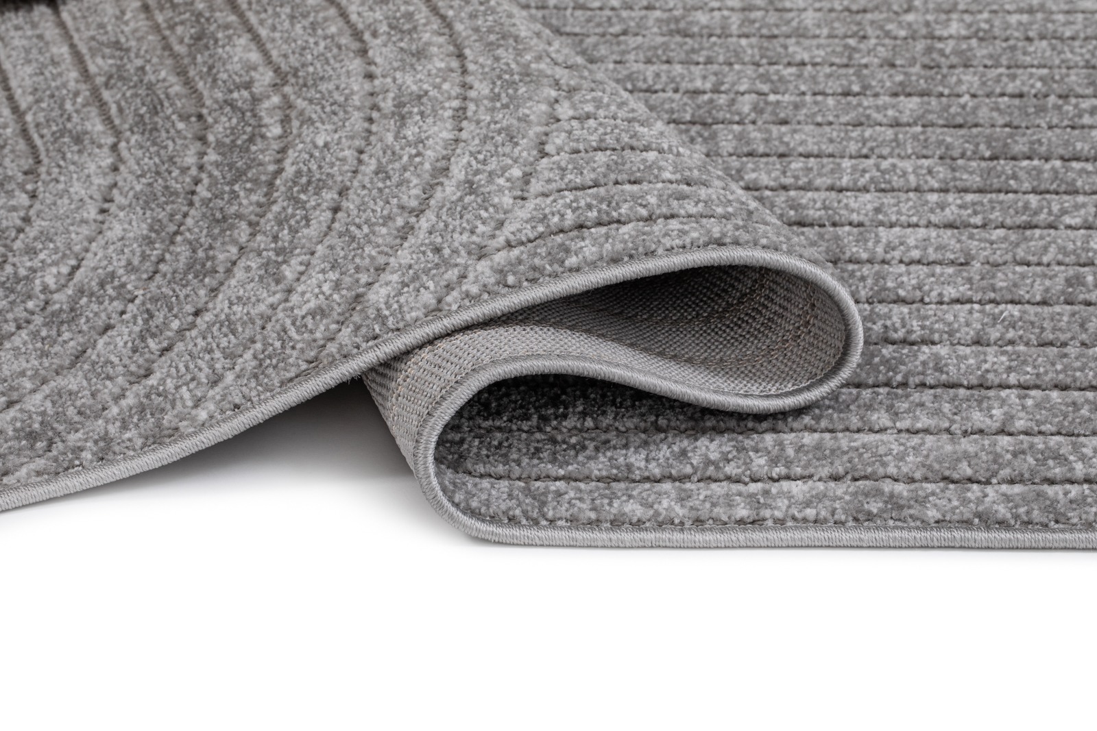 Grå Santos matta tillverkad i slitstark 100% polypropylen. Eleganta mönster och mångsidig användning för både inomhus- och utomhusmiljöer. Lättskött och hållbar för långvarig komfort.