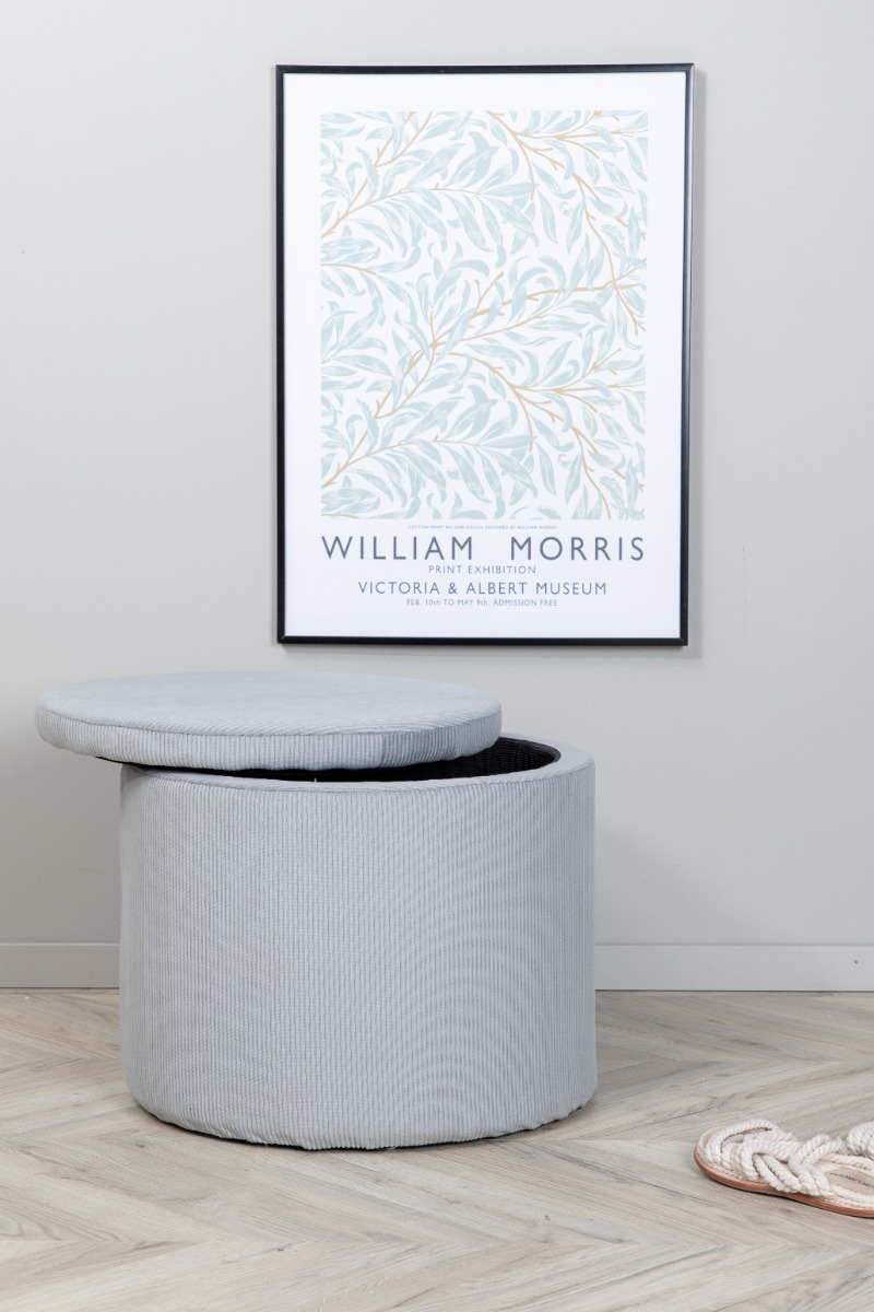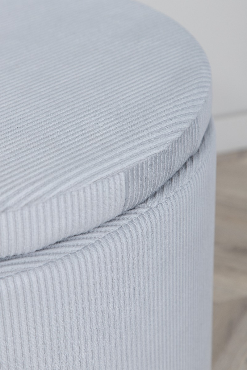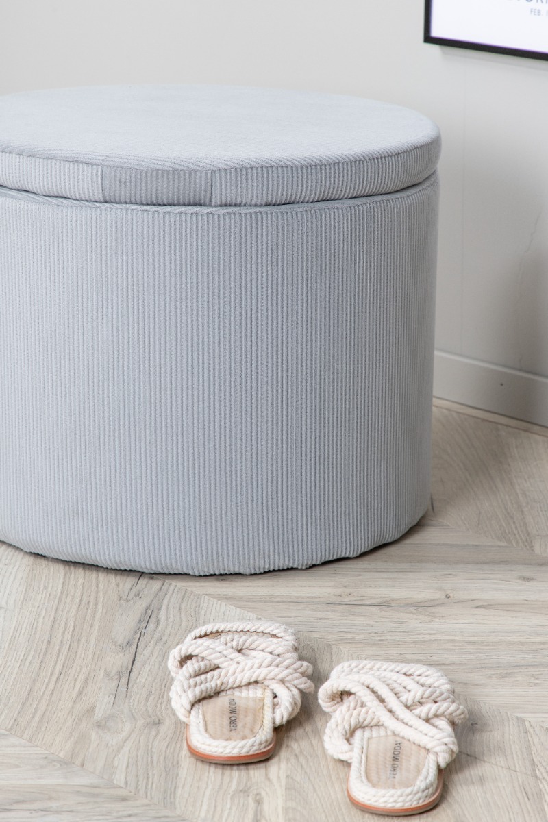 Denna moderna sittpuff kombinerar funktion och estetik genom sin grå manchesteryta och 50-talsinspirerade design. Den är enkel att flytta och kompletterar både vardagsrum, sovrum eller entré. Med sin avtagbara topp erbjuder den smart förvaring som håller ditt hem prydligt. Lätt att rengöra med dammsugare eller lätt fuktad trasa för att bevara dess lyster och mjukhet över tid. Perfekt som extra sittplats när gästerna är många eller som en dekorativ detalj som lyfter din inredning.