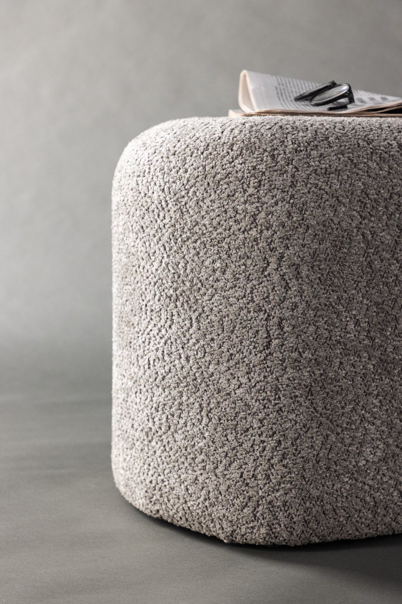 Elandros sittpuff i grå boucle kombinerar mjuk komfort med elegant design. Perfekt för hall, vardagsrum eller som extra sittplats i hemmet.