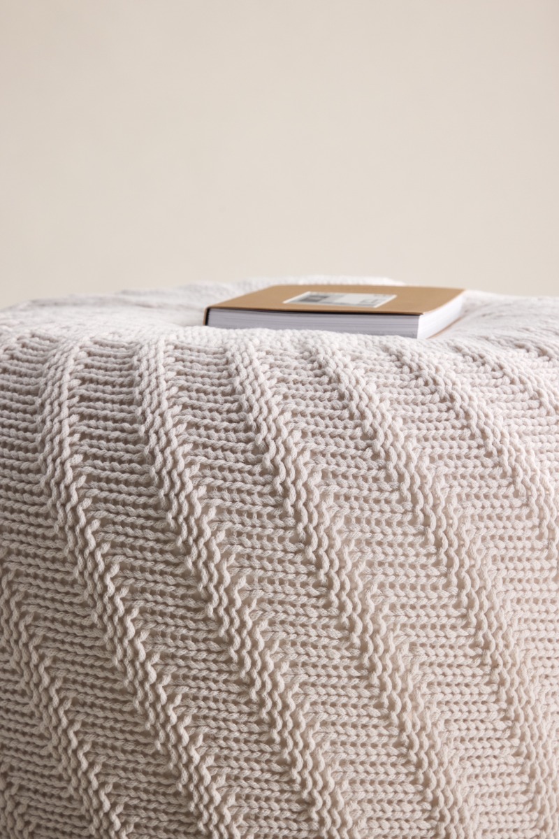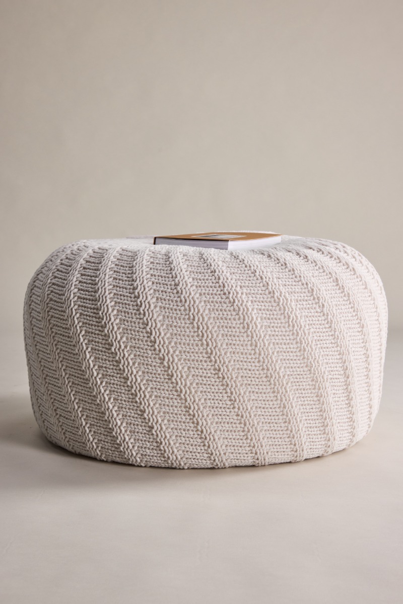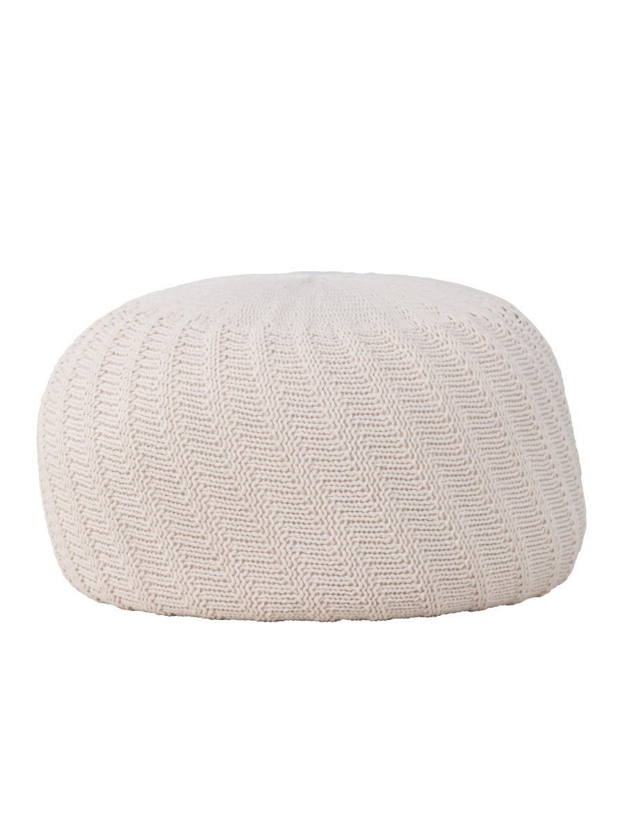 Mjuk och multifunktionell sittpuff i elegant offwhite polyester. Perfekt som extra sittplats eller fotpall med en generös storlek på 60 cm.
