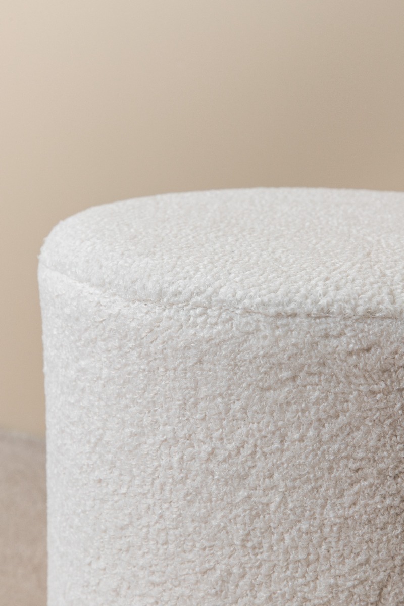 • Mjuk cylinderform i trendigt benvitt teddytyg för en varm och inbjudande känsla