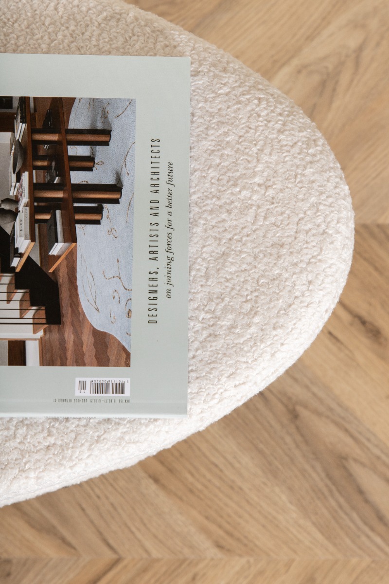 Oval Sittpuff i Stilren Vit Teddytyg – Komfort och Design i Ett
