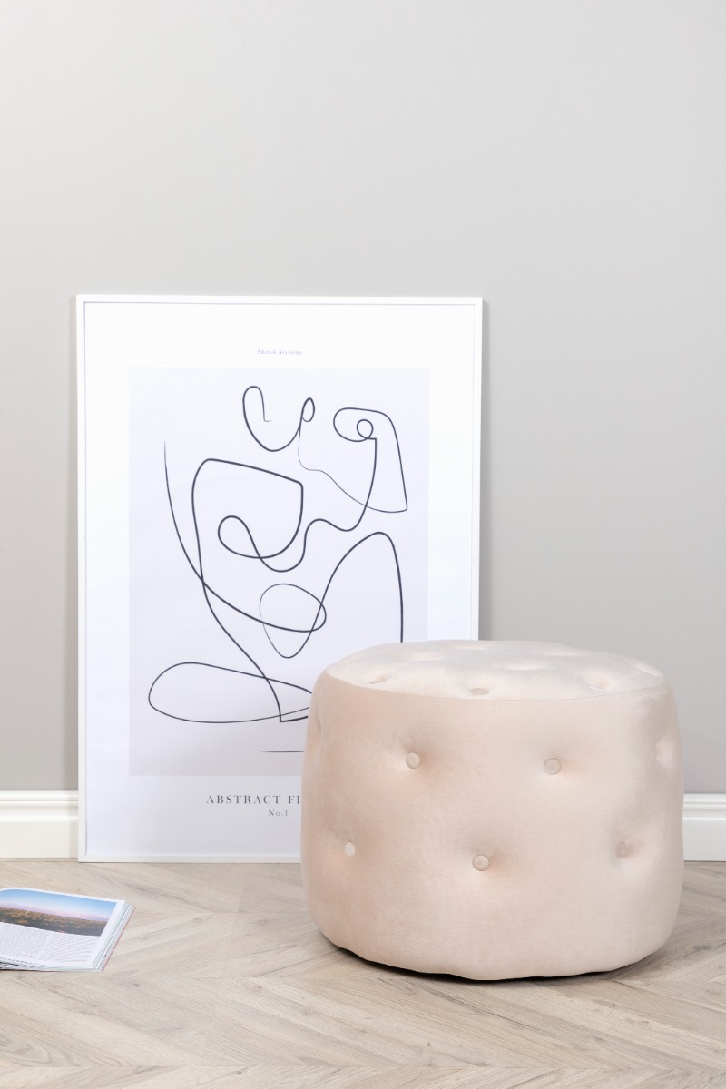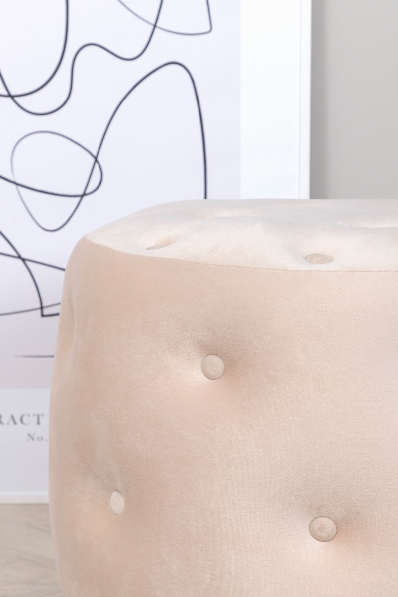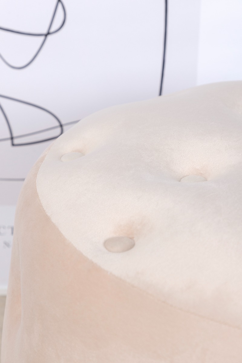 Vit sammetsittpuff med elegant design och komfort. Perfekt som extra sittplats eller fotstöd för en lyxig känsla i ditt hem.