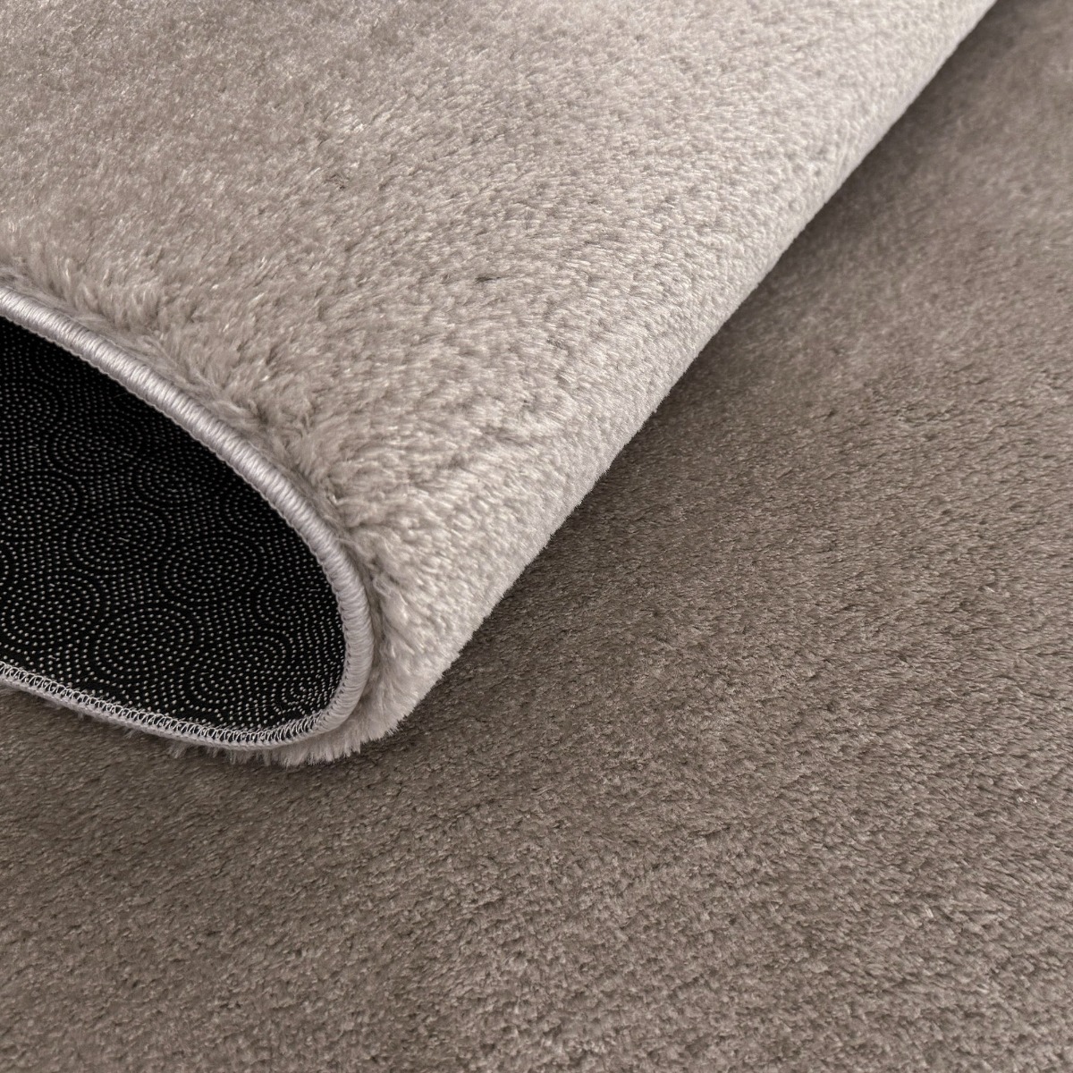 Terri Greige är en mjuk ryamatta med elegant glans och halkfri baksida. Den djupa greige-tonen ger rum en varm och ombonad känsla.