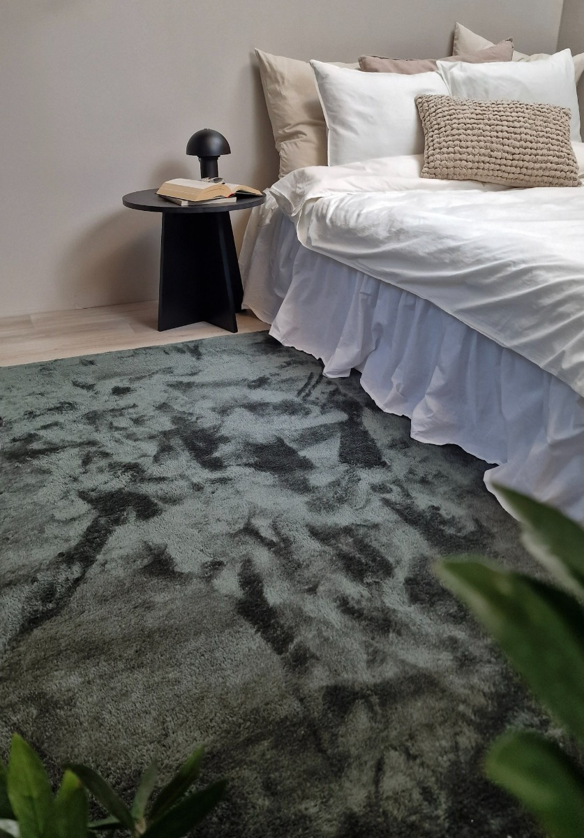 Terri är en mjuk och elegant grön ryamatta i 100% polyester med lyxig glans och antihalkskydd. Perfekt för en varm och inbjudande känsla i hemmet.