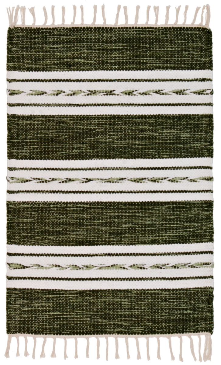Stilren grön trasmatta i mjuk bomull som ger värme och komfort i ditt hem. Lättskött och tålig för dagligt bruk.