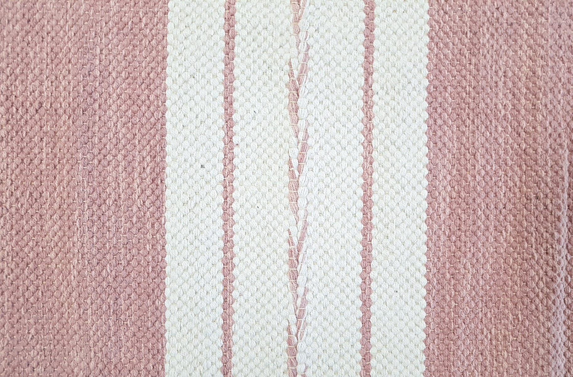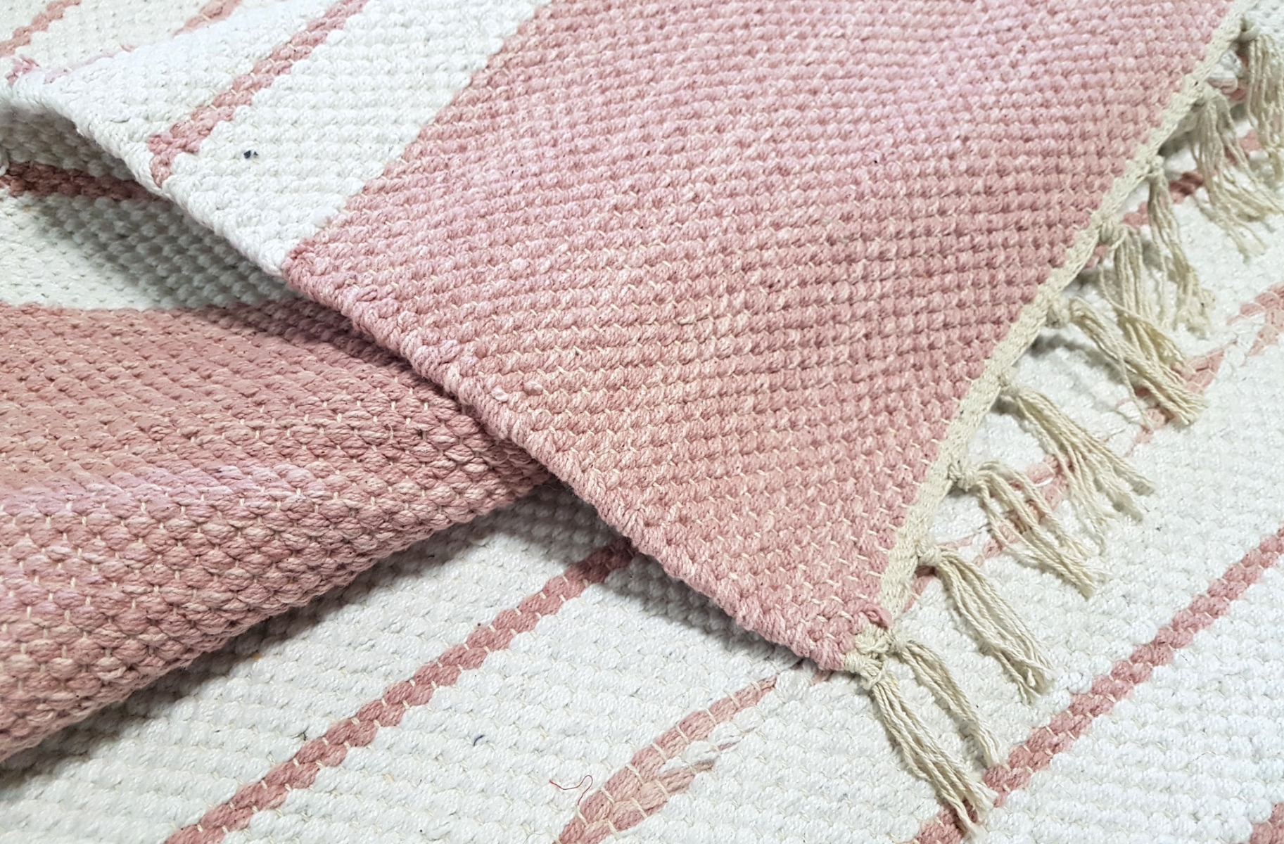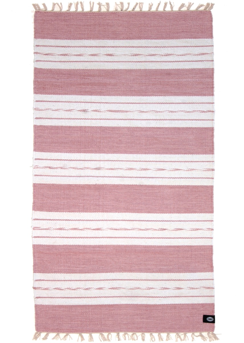 Rosa bomullstrasmatta med cirka 10 mm tjocklek som förhöjer hemmet med mjukhet och värme. Ett stilfullt, lättskött tillskott i din inredning.