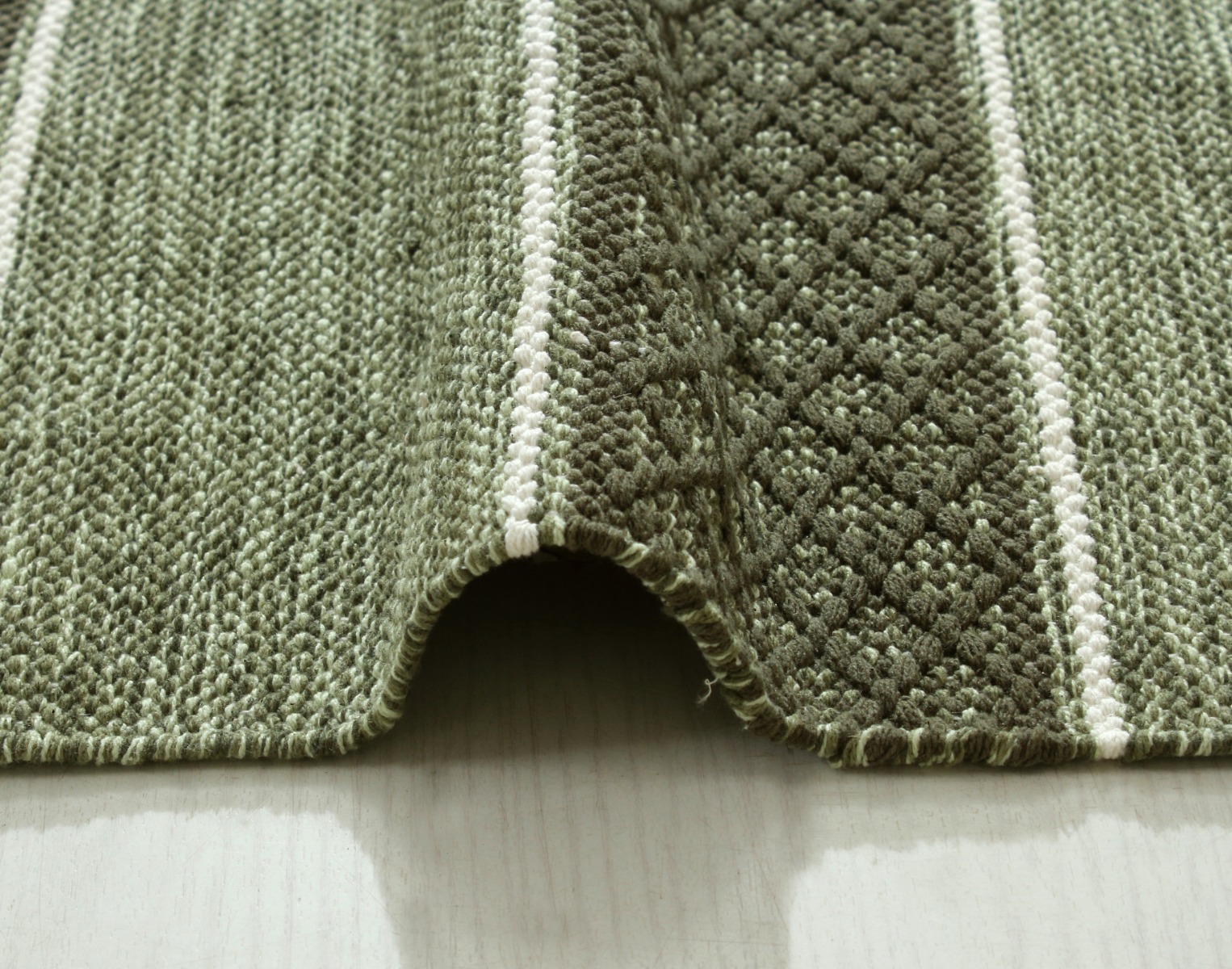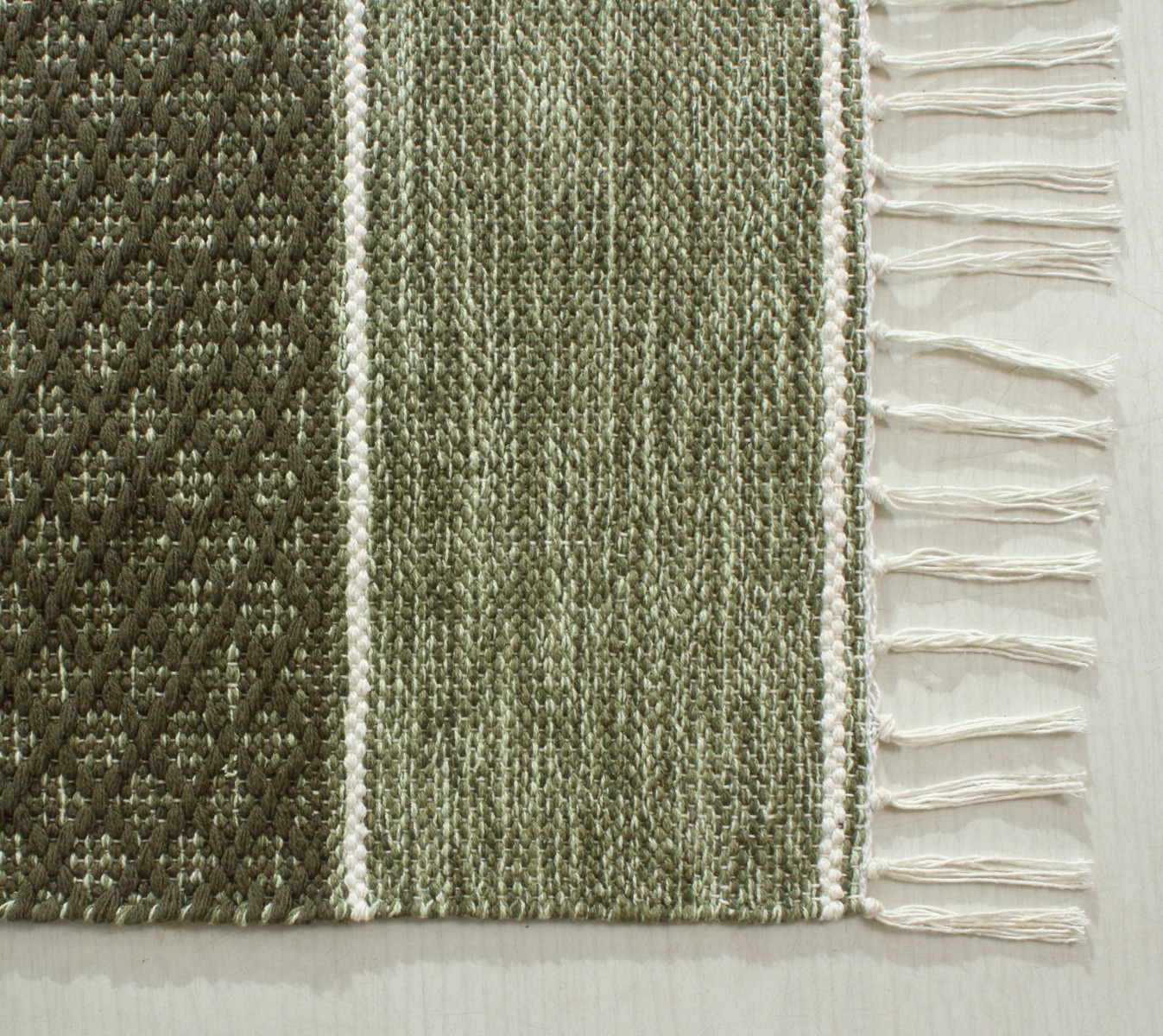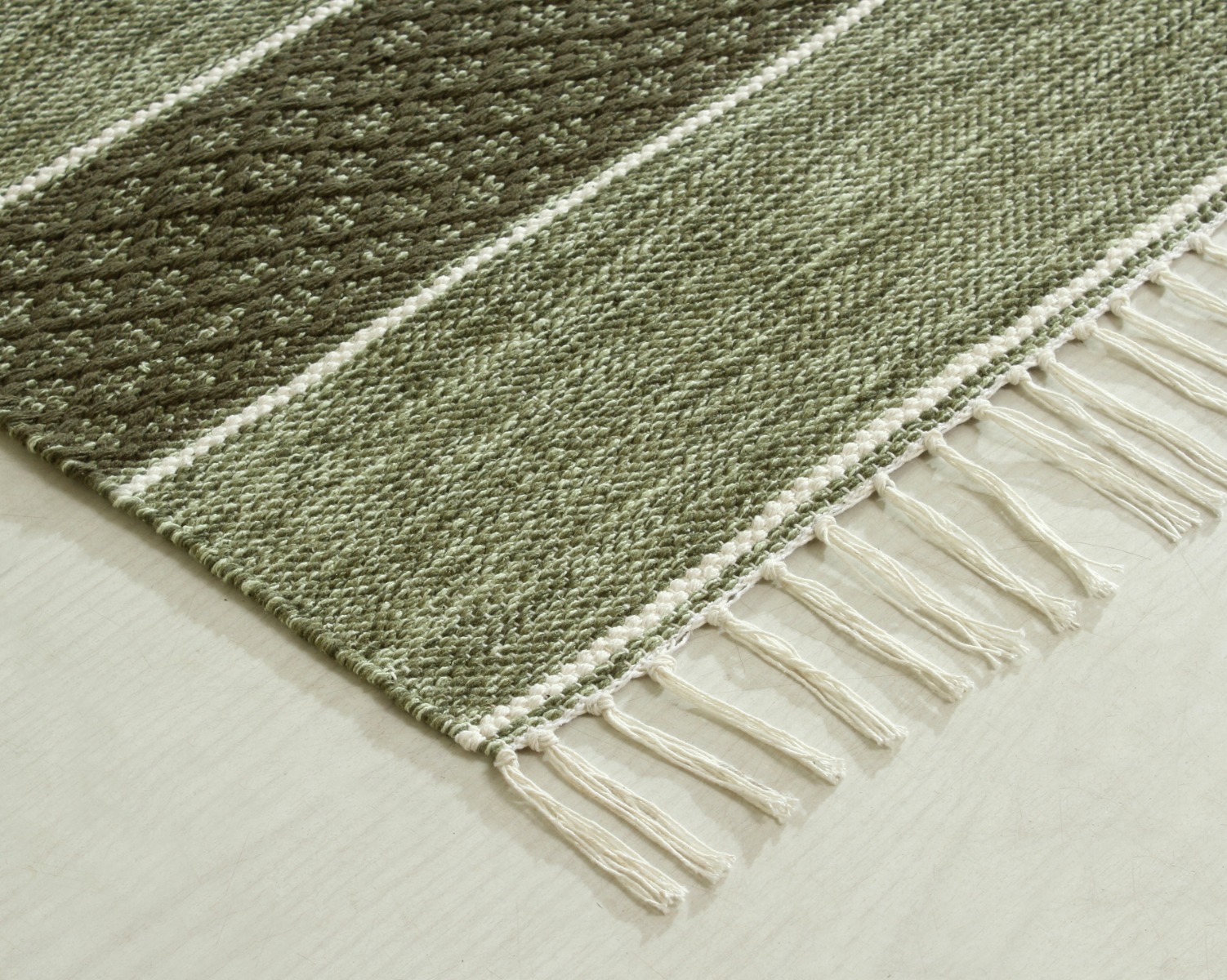 Ge ditt hem en mjuk, handvävd grön trasmatta i tålig bomull. Perfekt för entré eller vardagsrum – slitstark, mjuk och lätt att matcha.