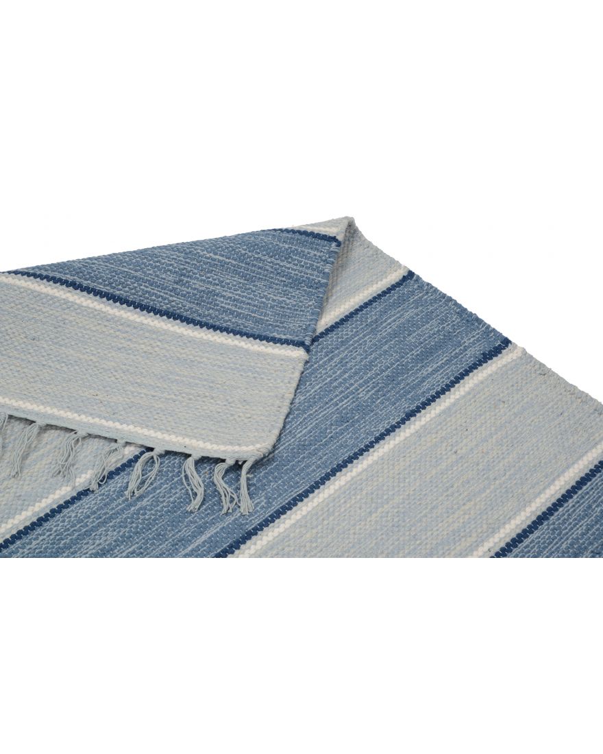 Mjukt och slitstarkt golv i 100% bomull med vacker ljusblå nyans. Perfekt som trasmatta för ett mysigt och stilfullt hem.