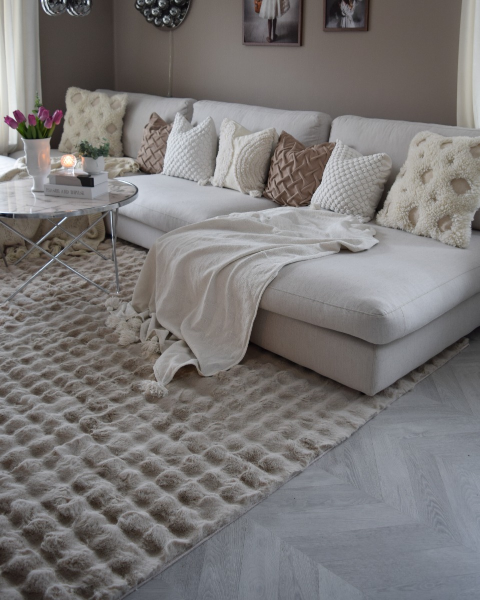 Denna Rabbit Bubble pälsmatta är perfekt för dig som vill skapa en ombonad och modern atmosfär i ditt hem utan att kompromissa med hållbarhet eller komfort. Tack vare den syntetiska polyesterkvaliteten undviker du allergener och bidrar till ett djurvänligt val. Den neutrala taupefärgen gör mattan mångsidig och lätt att kombinera med såväl ljusa som mörka rum. Med sin lätta skötsel och tvättbara egenskaper blir den ett praktiskt tillskott i vardagsrum, sovrum eller hall. Placera mattan där du vill ha både värme och mjukhet under fötterna och njut av en stilren och tålig detalj i din inredning.