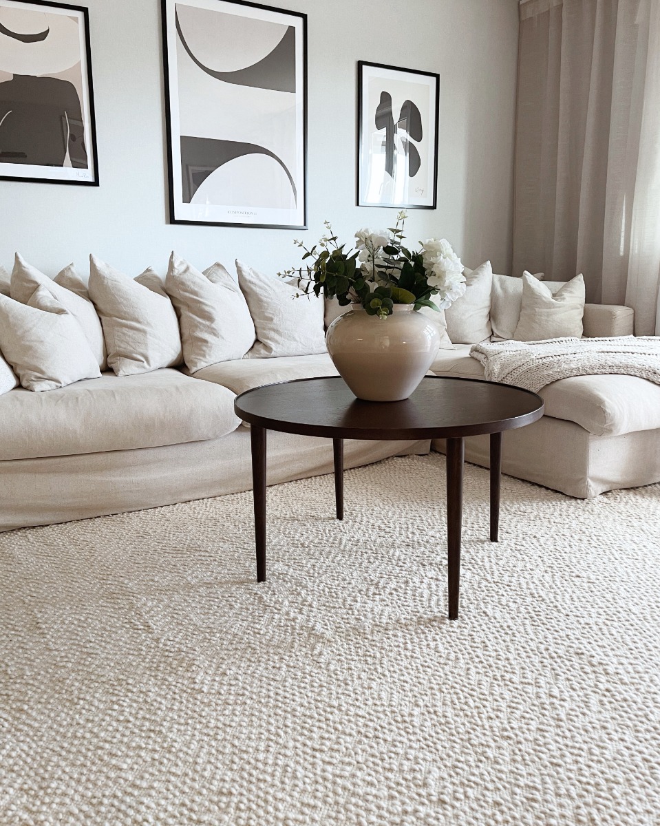 Mjuk och slitstark ullmatta i offwhite med naturlig värme. Perfekt för att skapa en lugn och stilfull atmosfär i ditt hem.