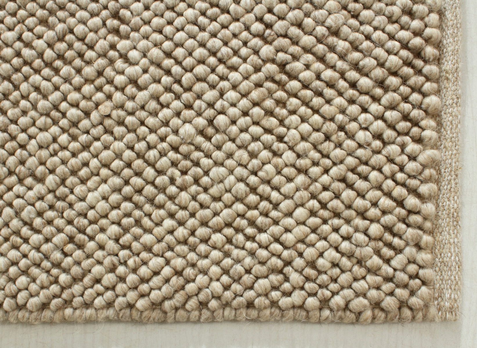 Mjuk och slitstark beige ullmatta med bubblig struktur. Perfekt för ett varmt, ombonat hem med hållbar kvalitet och tidlös design.