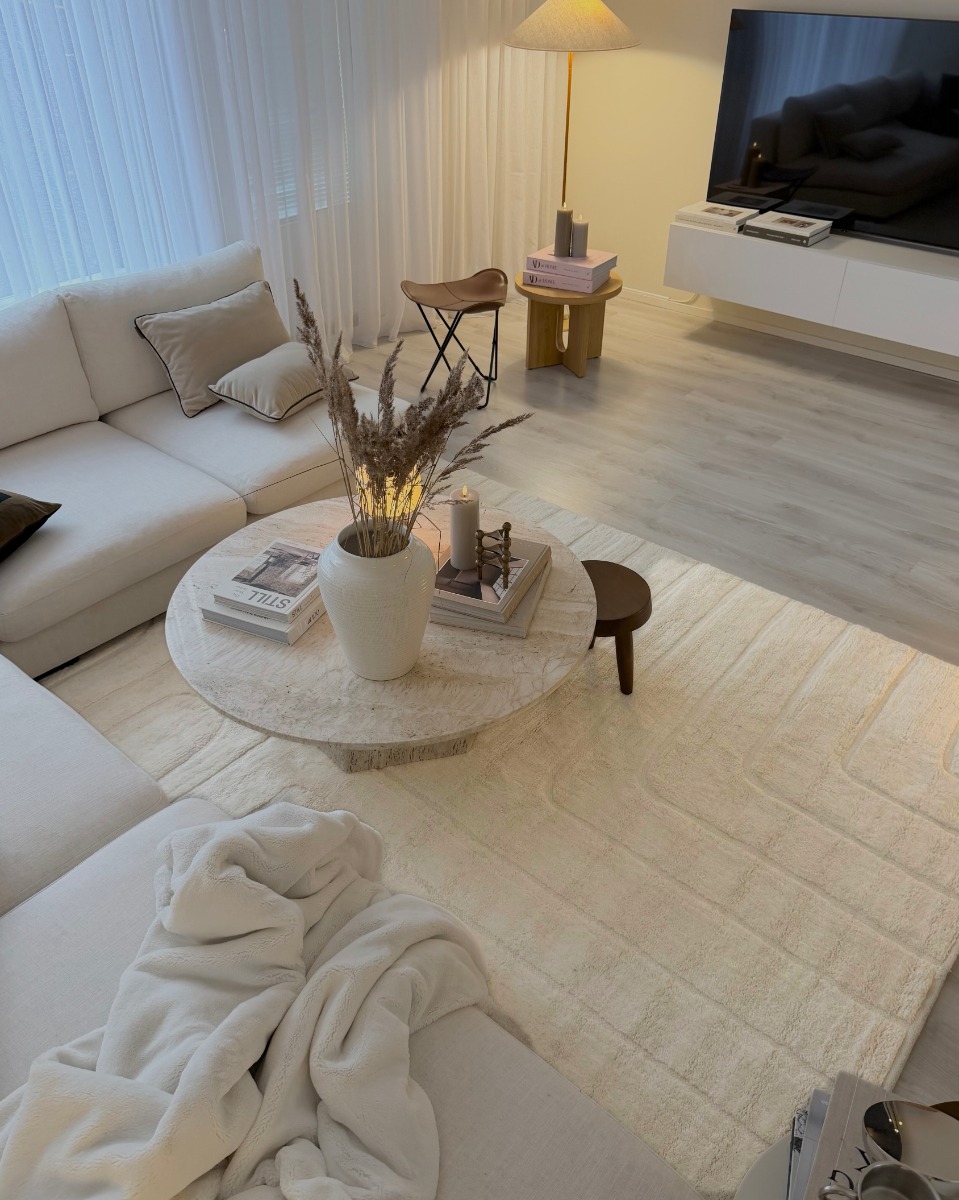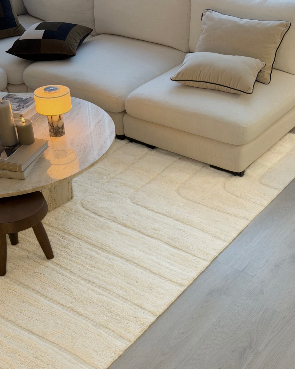 Mjukt ullmatta i elegant offwhite med blandning av bomull för extra hållbarhet. Ger värme och stil till ditt hem med två olika tjocklekar för optimal komfort.