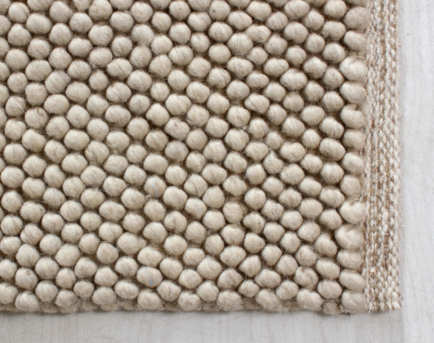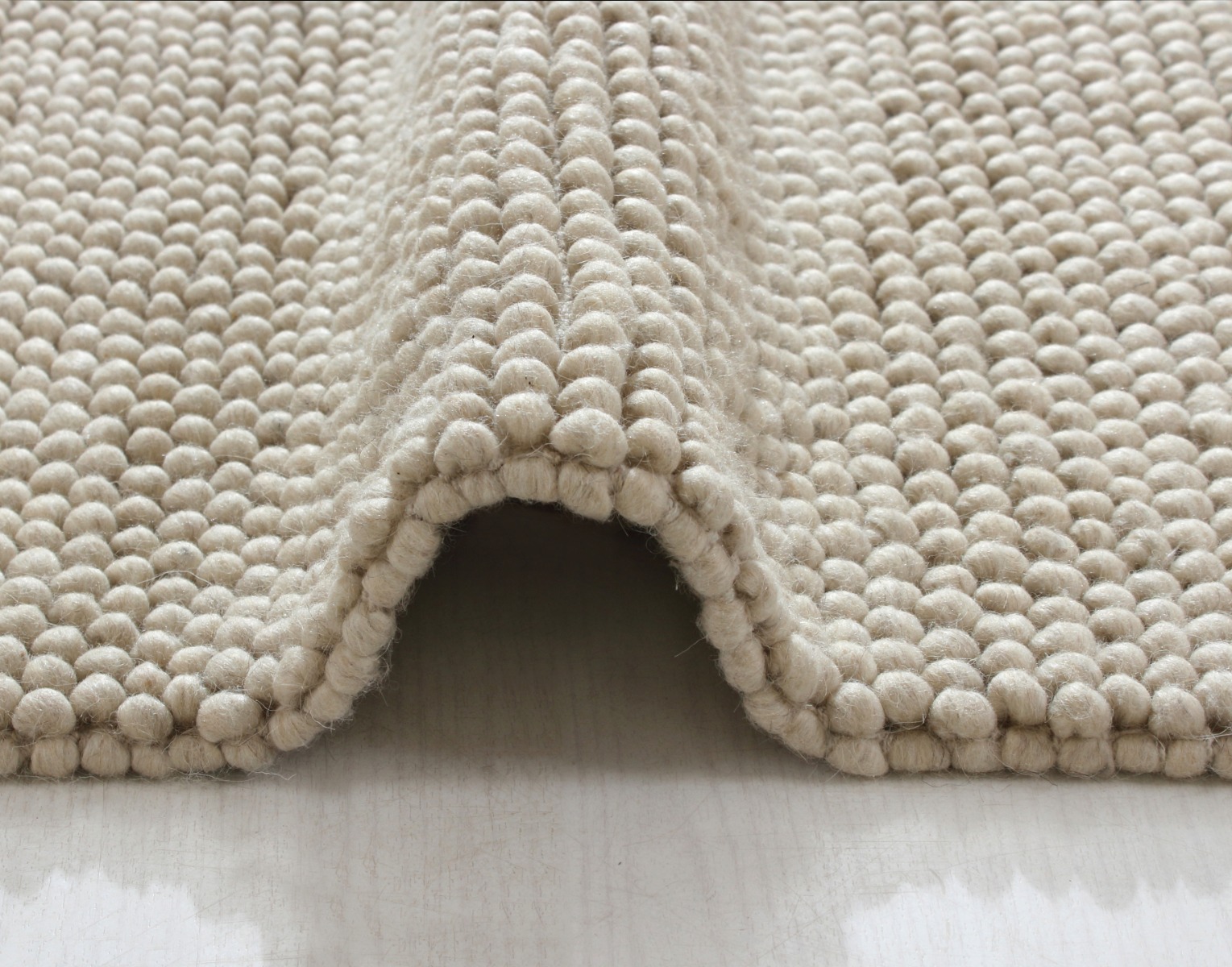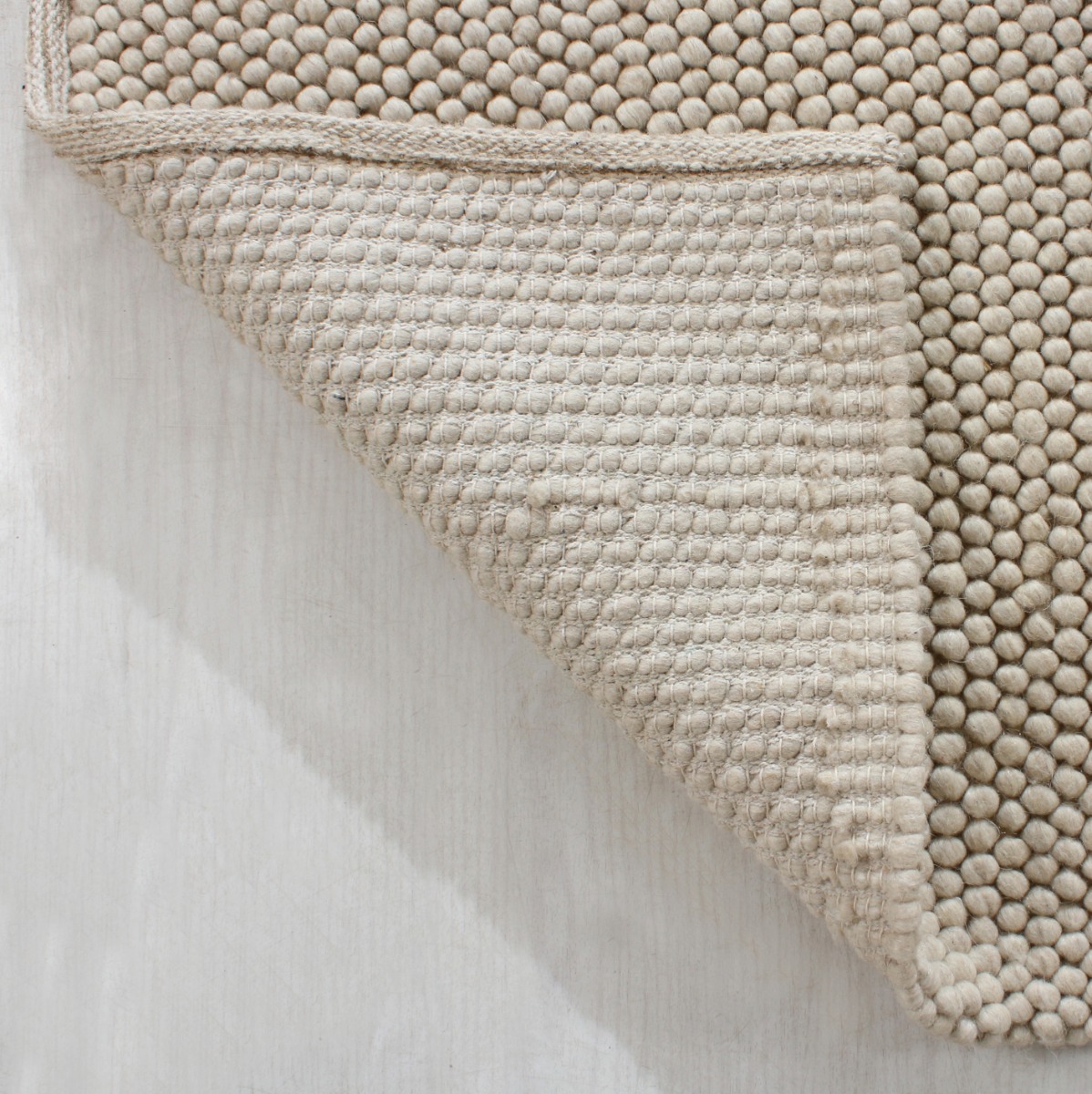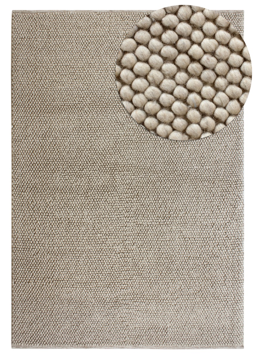 Mjuk och fluffig handvävd ullmatta i varm beige färg. Perfekt för en ombonad och tidlös känsla i alla rum.