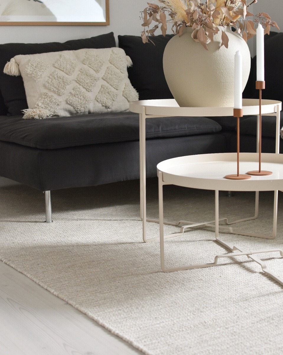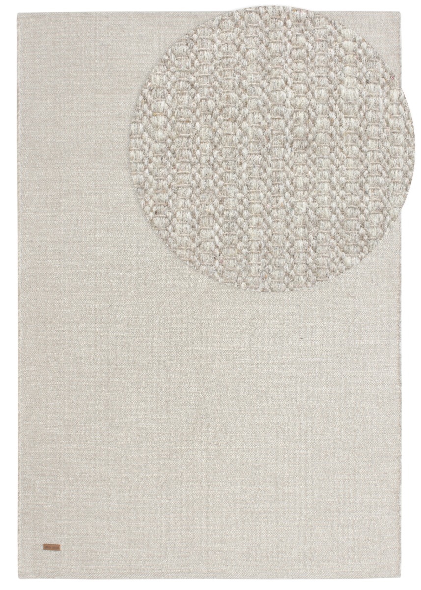 Upptäck ullmattan Molly i kräm och grå – en mjuk och stilren matta med naturligt ull- och bomullsmaterial, perfekt för ett varmt och trivsamt hem.