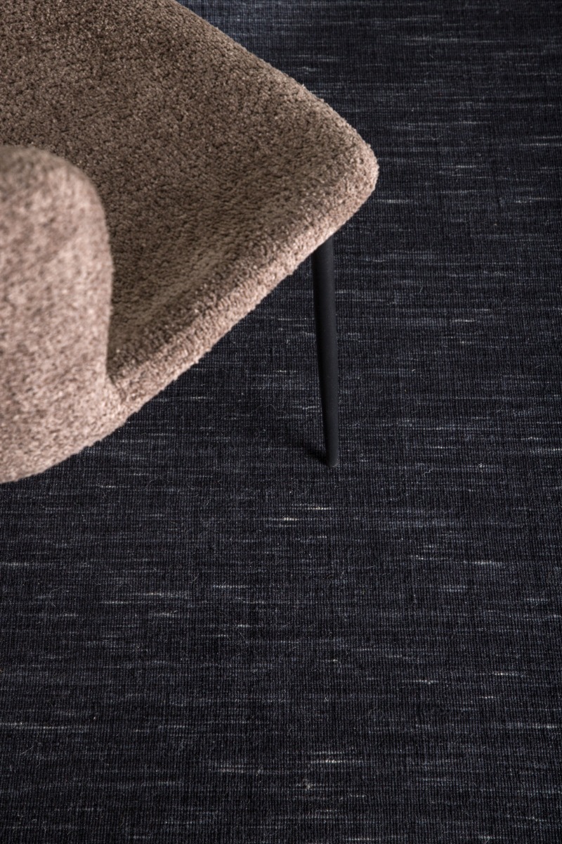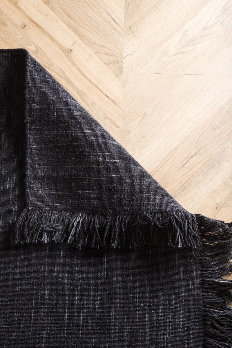 Svart ullmatta Mosso ger mjuk komfort och elegant design. Tillverkad i 100% ull med naturlig hållbarhet och värme för ditt hem.