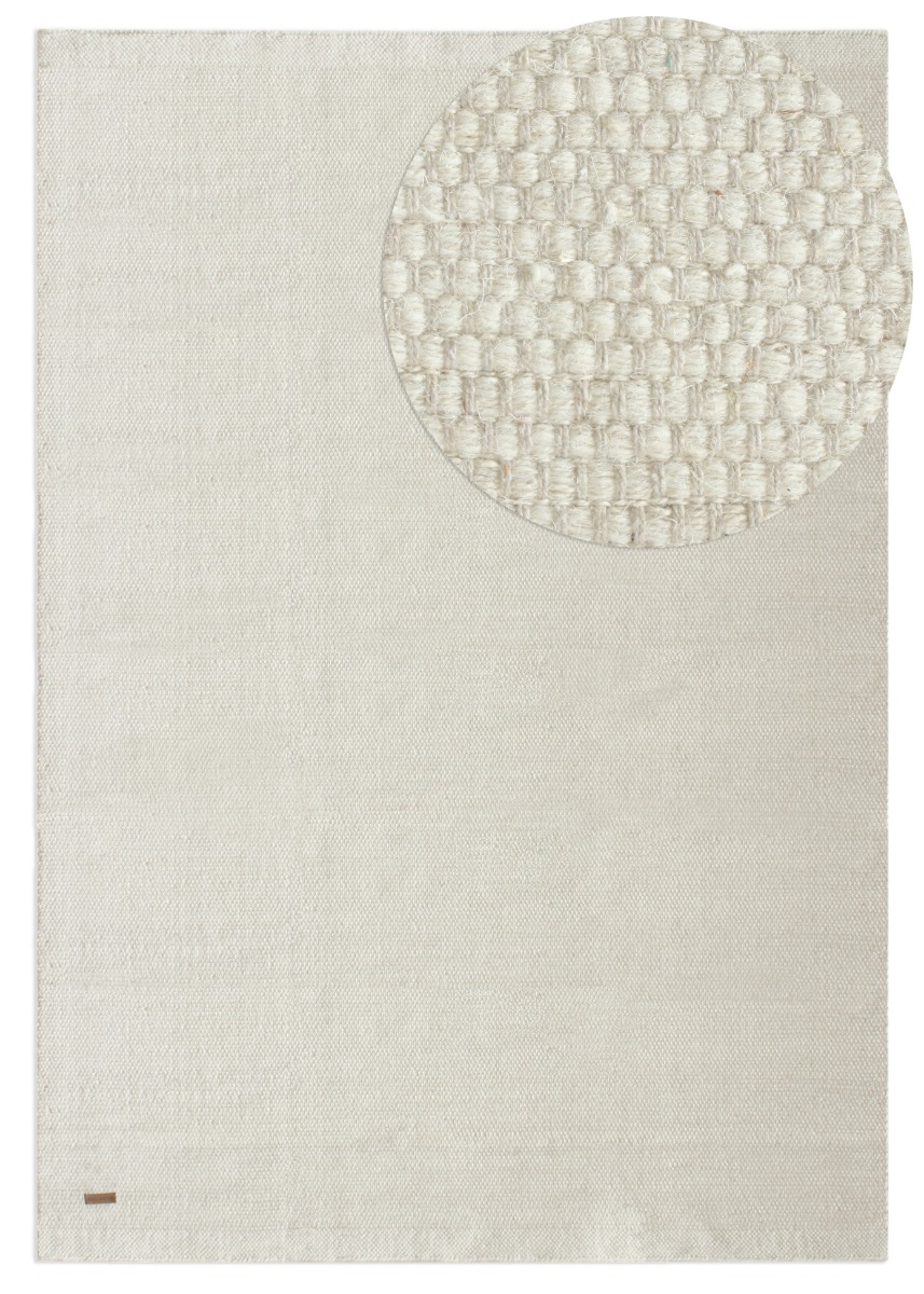 Naturlig och mjuk ull- och bomullsmatta i offwhite. Ger värme och komfort med en elegant neutral ton för alla rum.