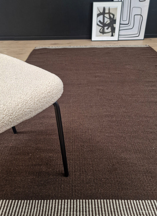 Handvävd ullmatta i varm brun nyans som erbjuder mjuk komfort och hållbar kvalitet. Passar perfekt i alla rum för en inbjudande och naturnära känsla.